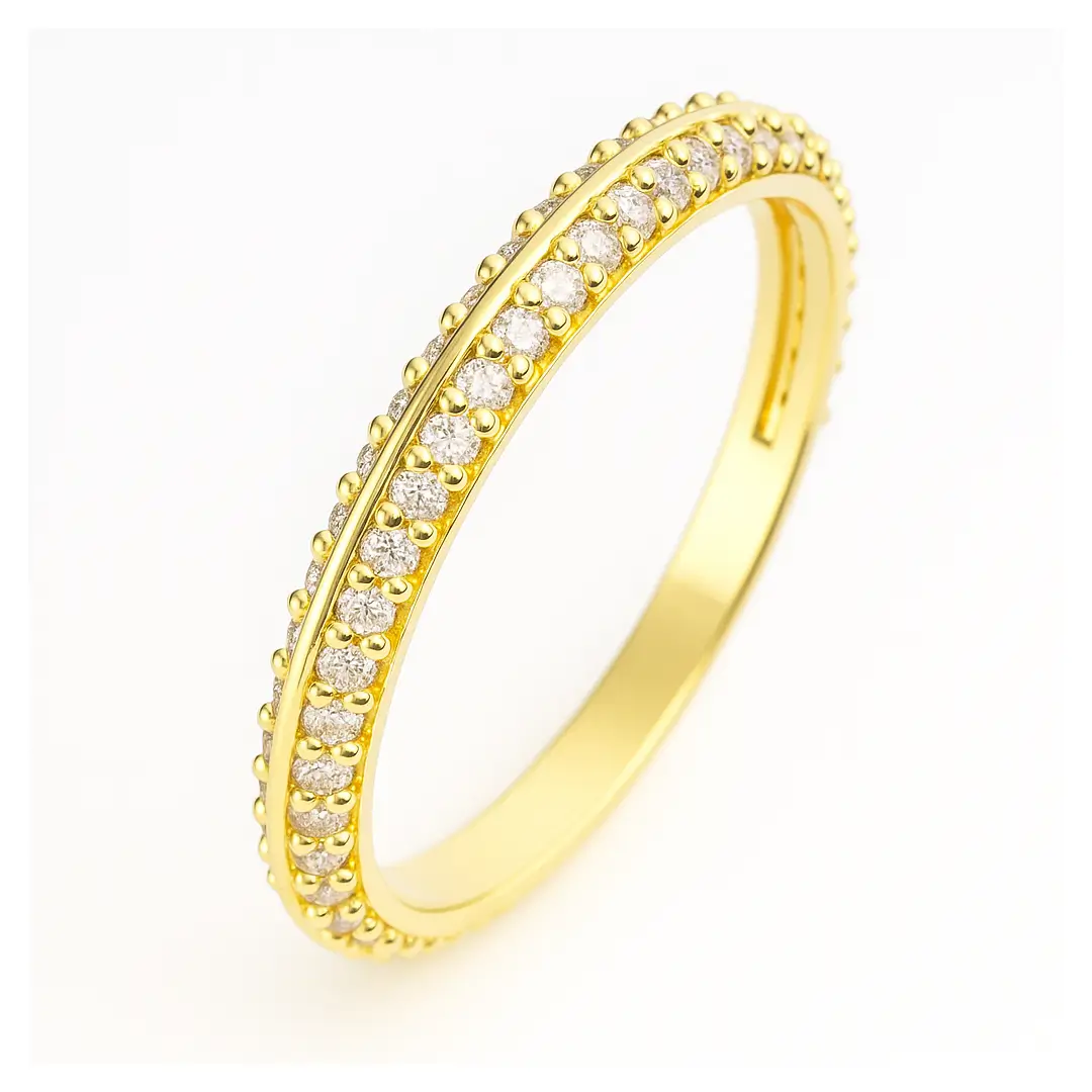 • Aliança com 2 carreiras de pedras em ouro maciço