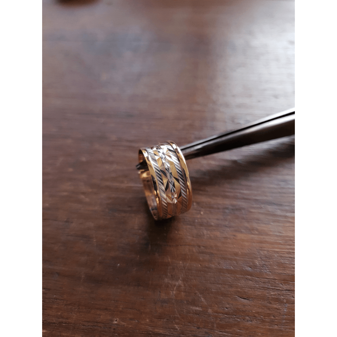 3 elos em ouro branco com cortes diamantados.