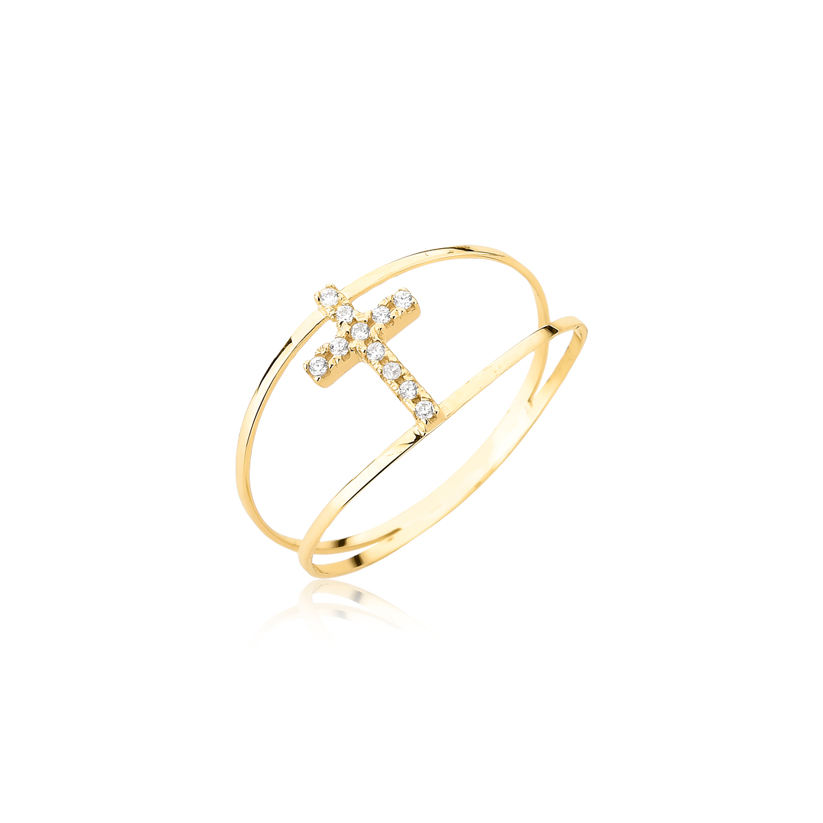 Anel Cruz aro duplo modelo CS721, disponível em ouro maciço 10k e em ouro maciço 18k.