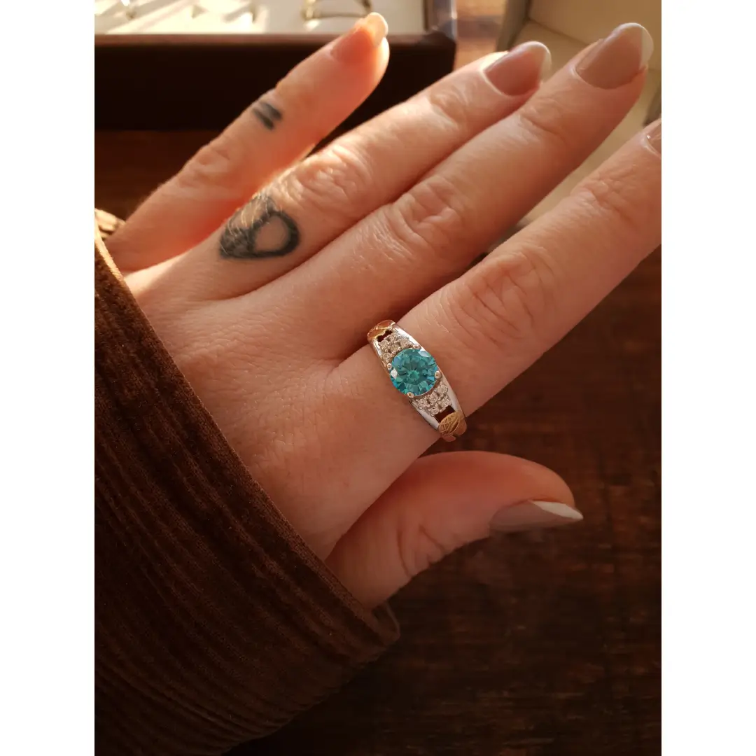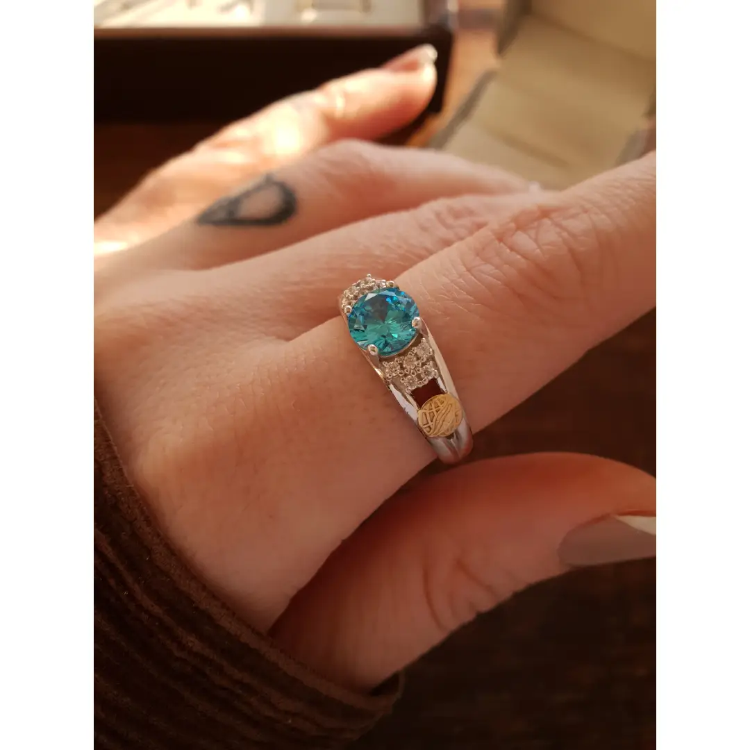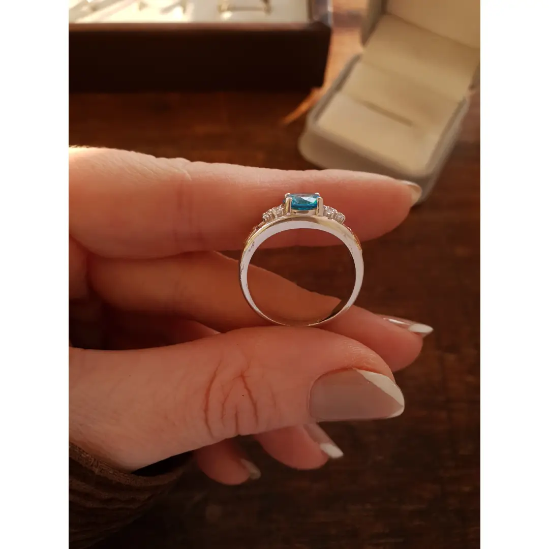 Pedra Central: Topázio Azul sintético 7mm (redonda)