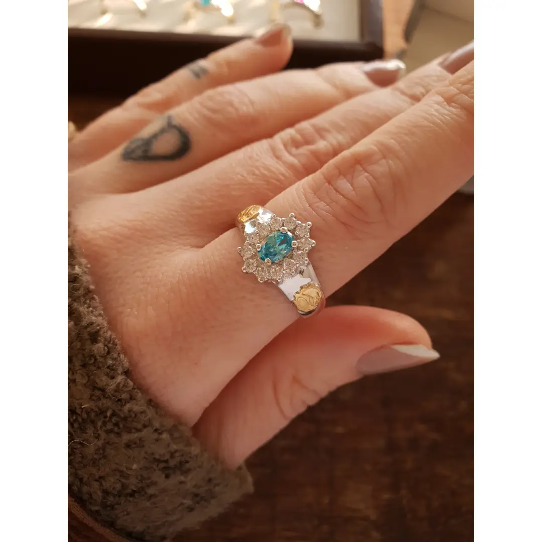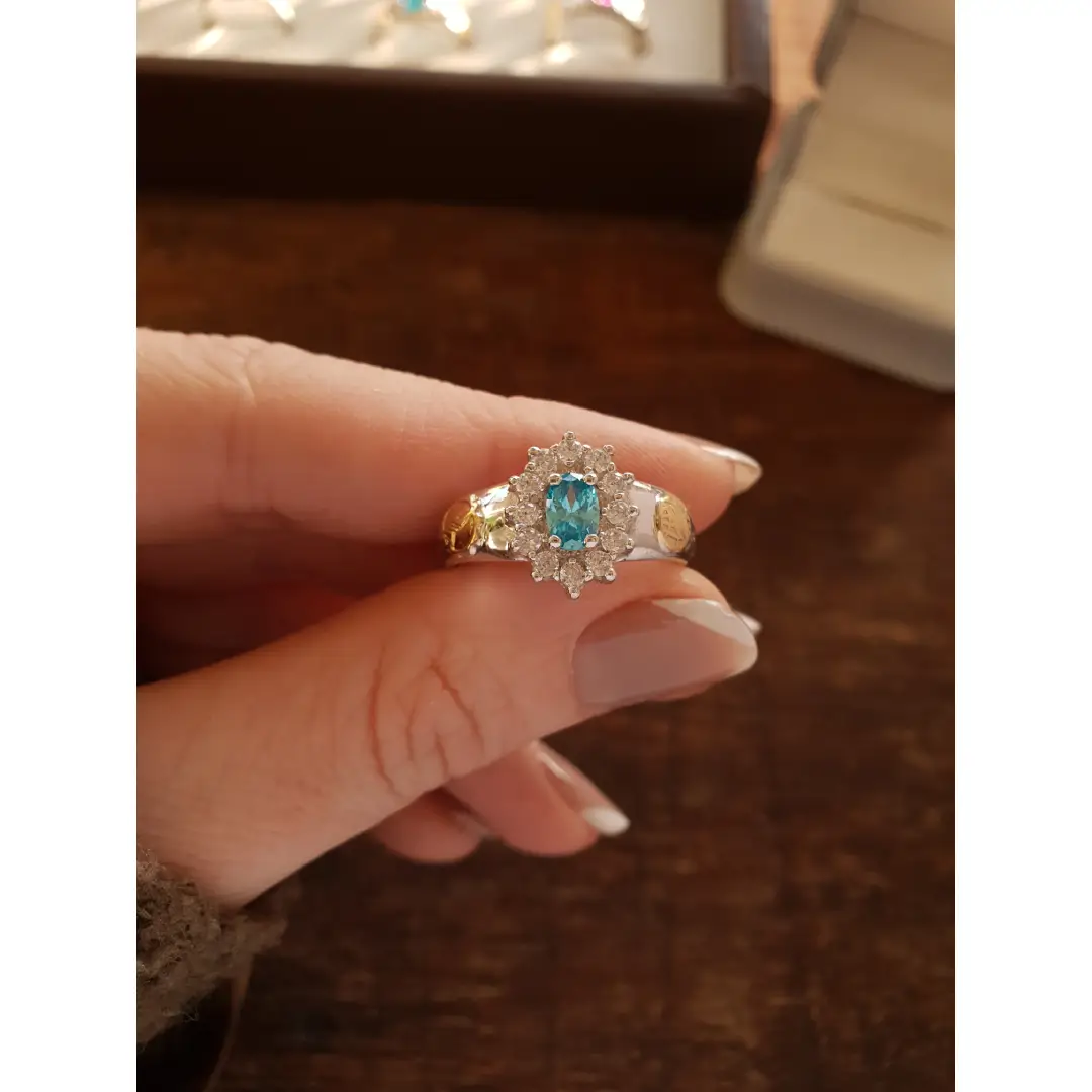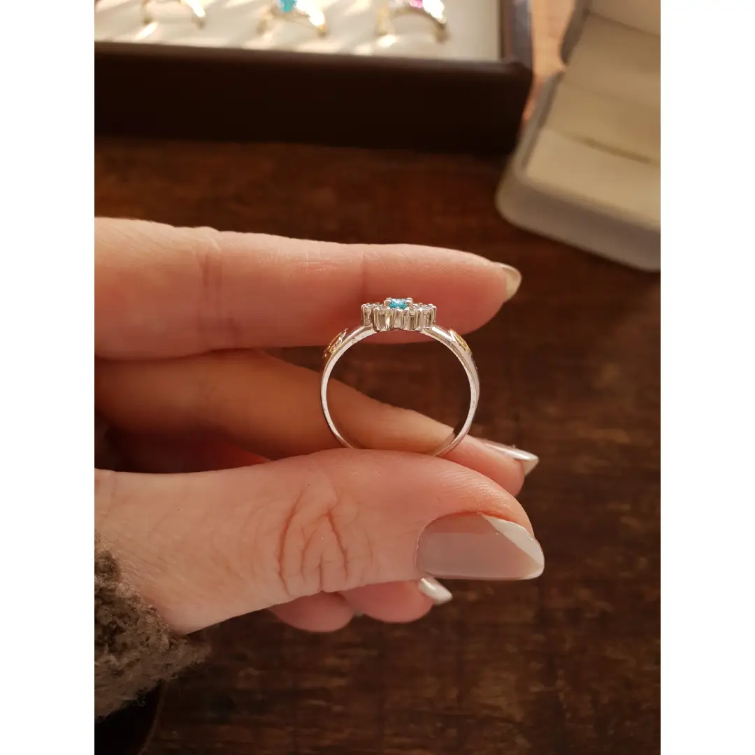 Pedra Central: Topázio Azul sintético 4mm por 6mm (oval).