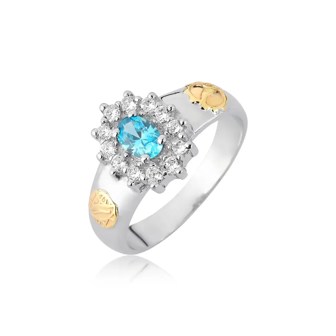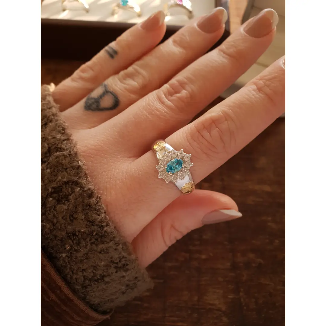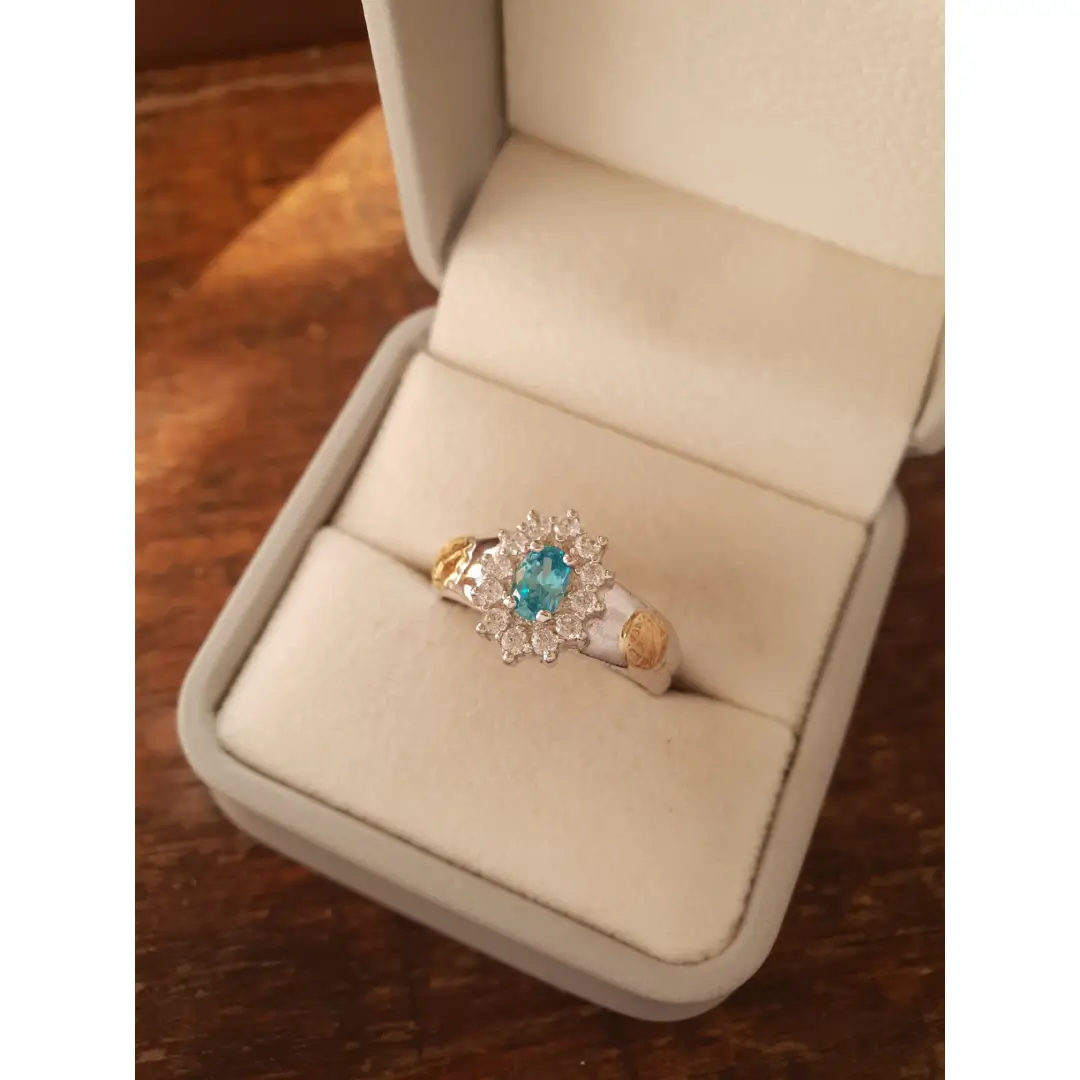 Pedra Central: Topázio Azul sintético 4mm por 6mm (oval).