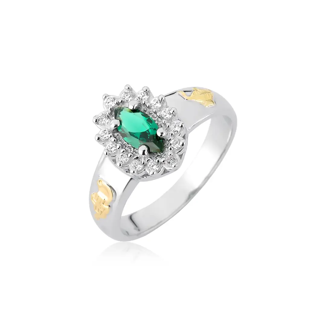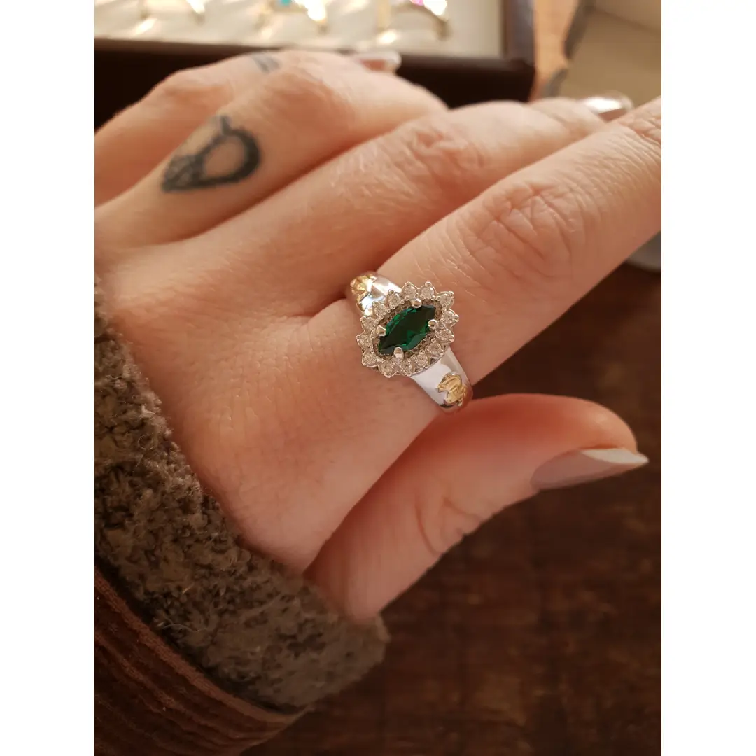 Pedra Central: Esmeralda sintética 4mm por 8mm (navete)