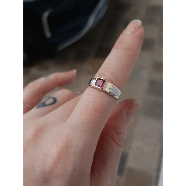 Pedra: Rubi sintético (carré) com 5mm por 5mm.