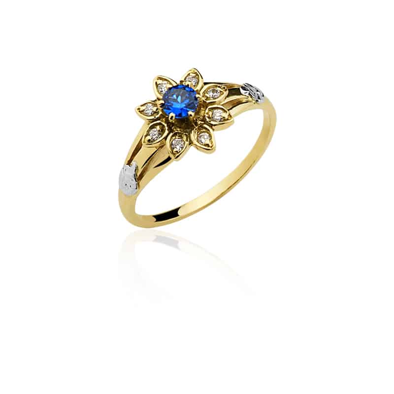 Pedra central: Safira Azul sintética redonda com 3,5mm.