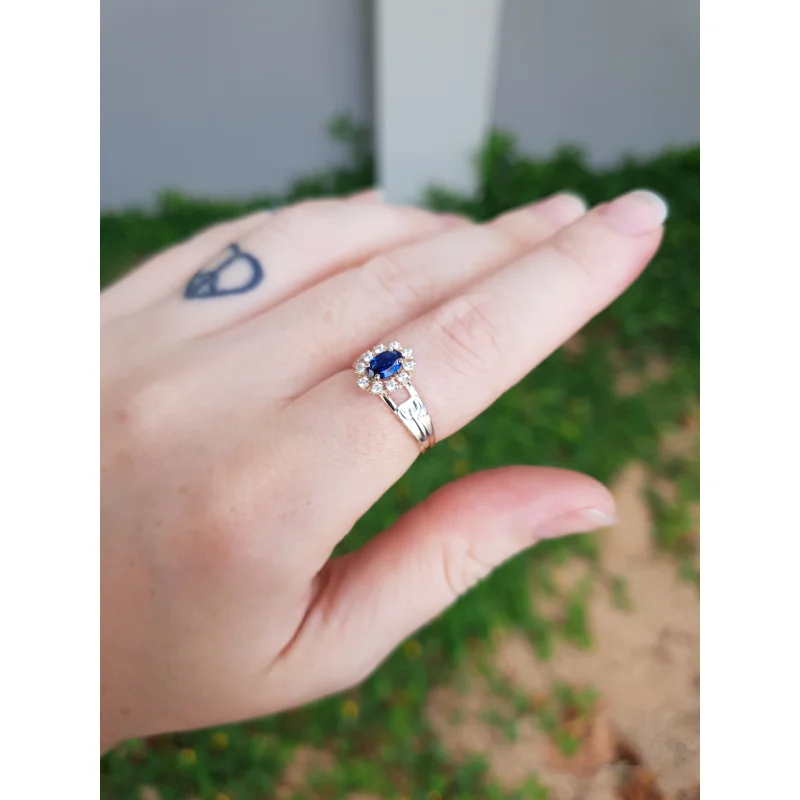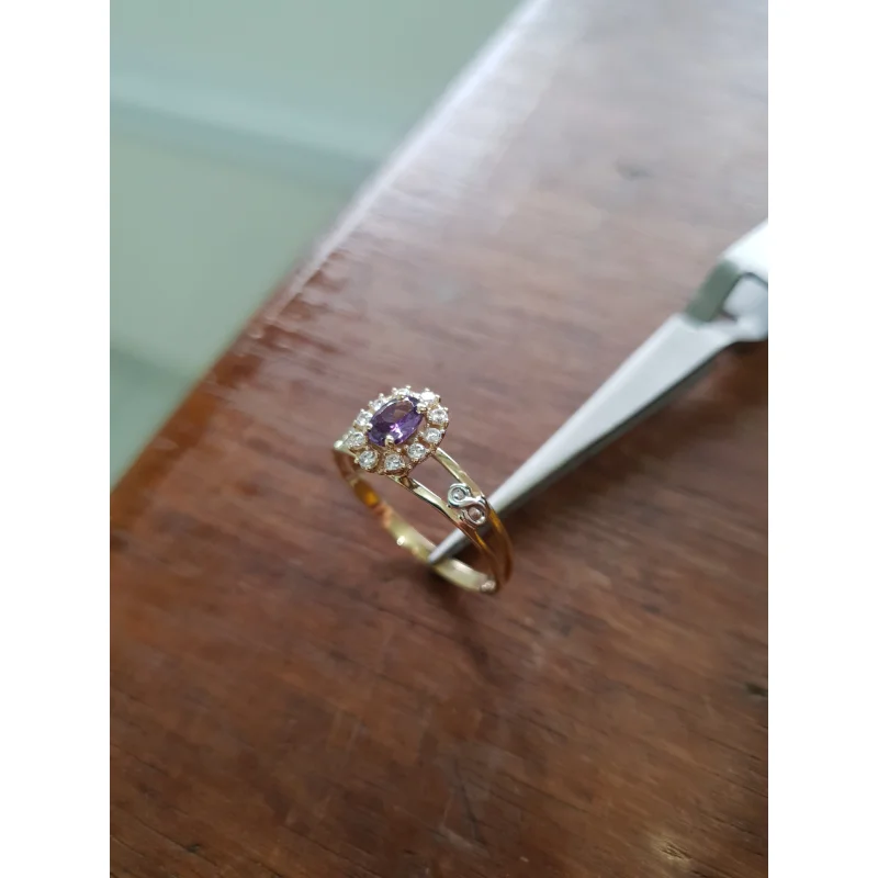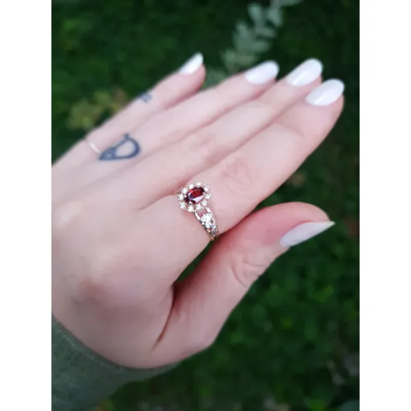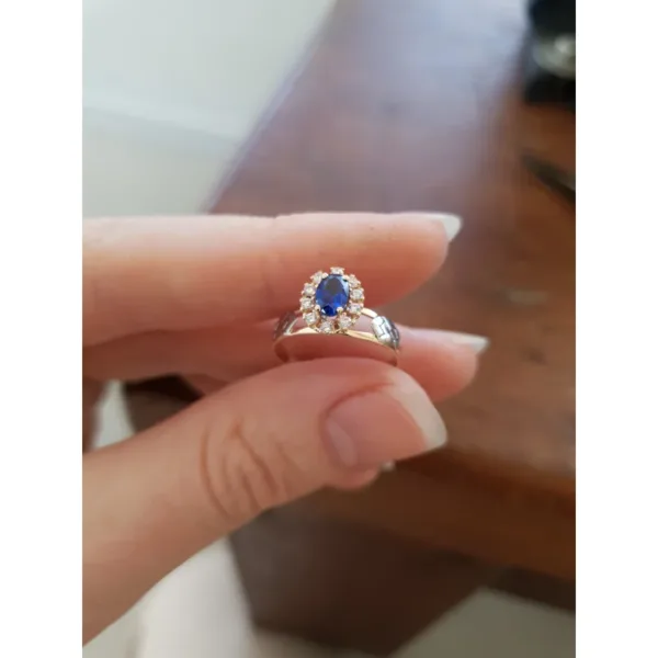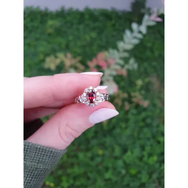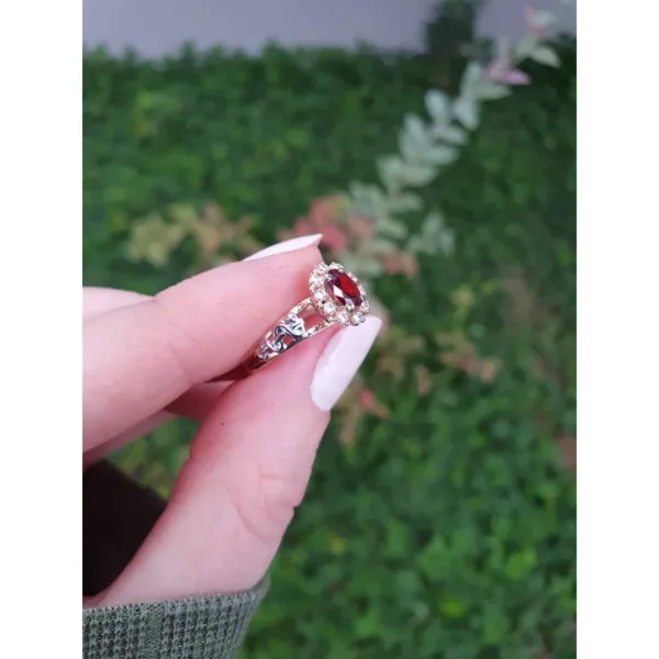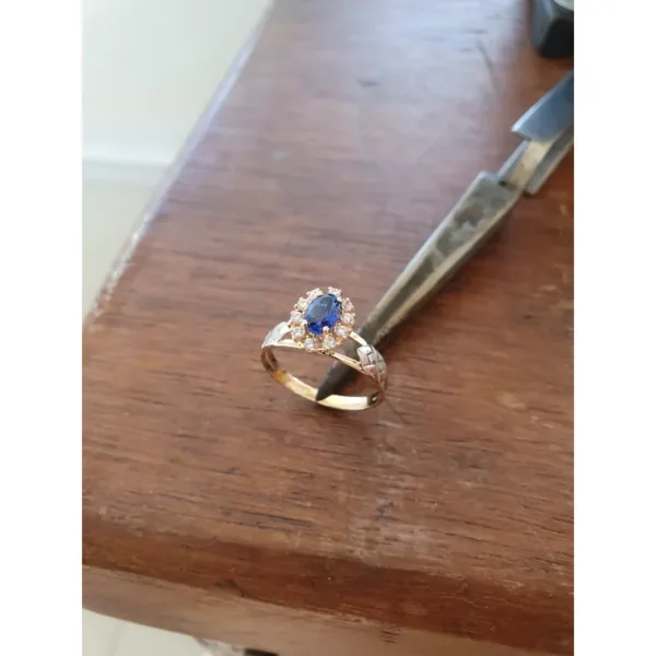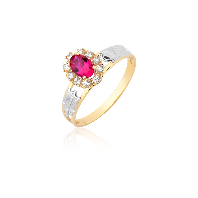 Pedra Central: Rubi sintético oval 4 mm por 6 mm.