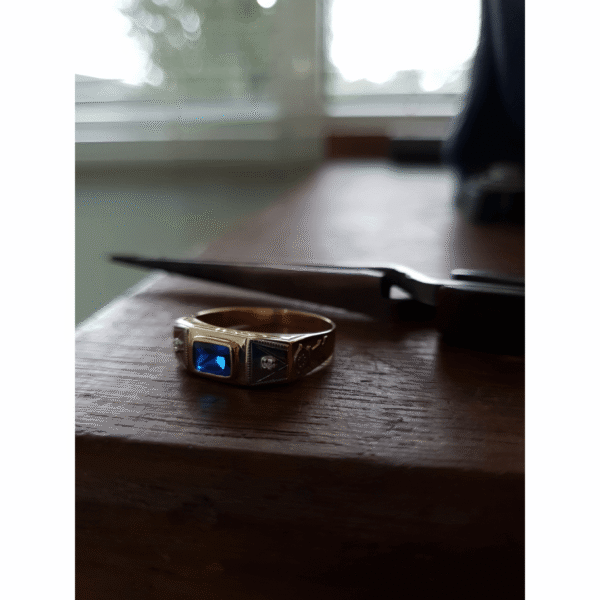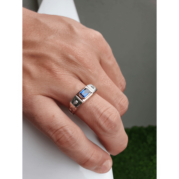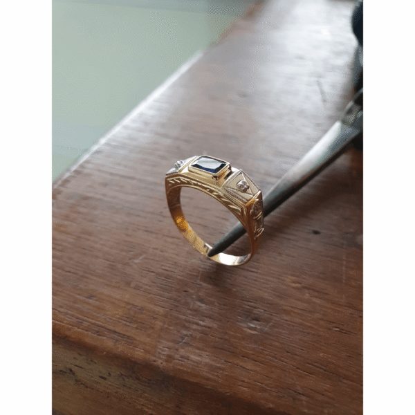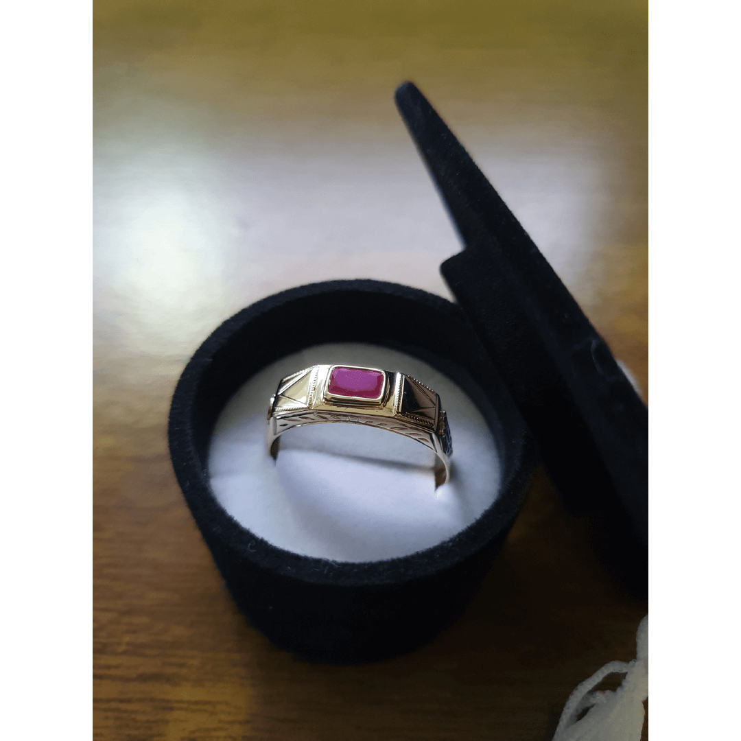 Pedra central: Rubi sintético octogonal 5mm por 7mm.
