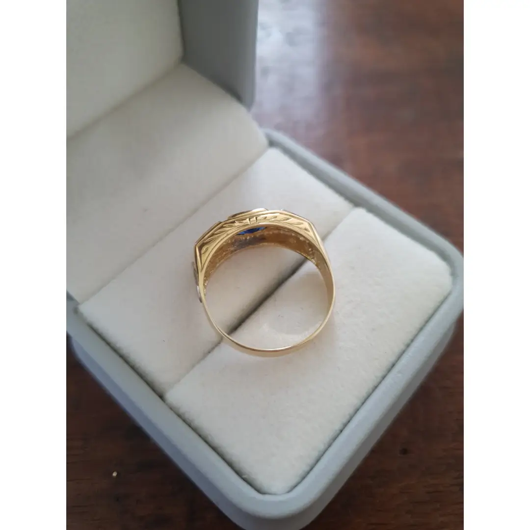 Emblemas do curso em ouro branco maciço e o restante do anel em ouro amarelo maciço.