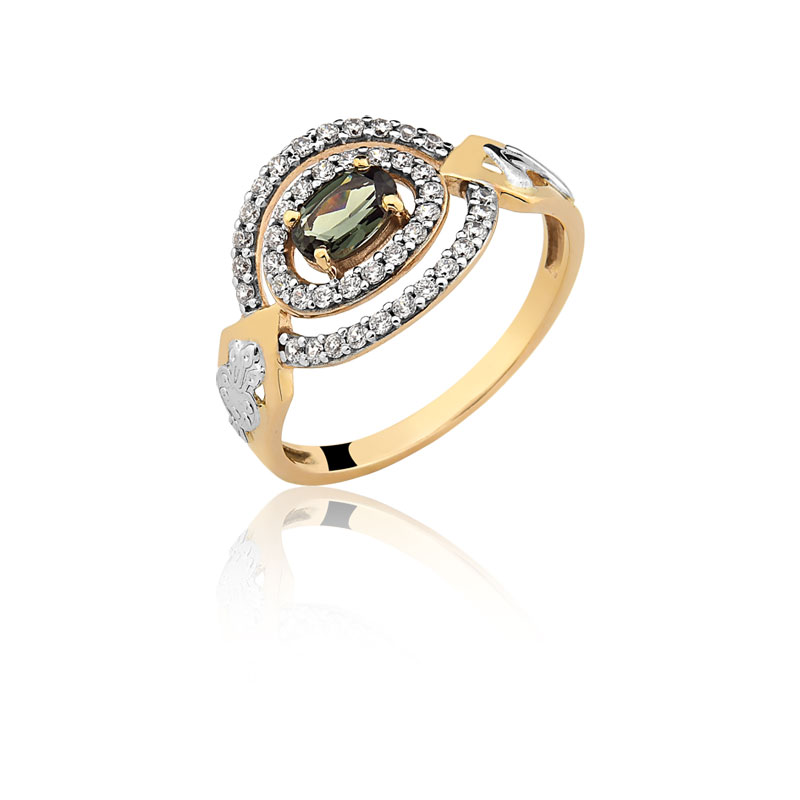 Emblemas do curso em ouro branco maciço e o restante do anel em ouro amarelo maciço.