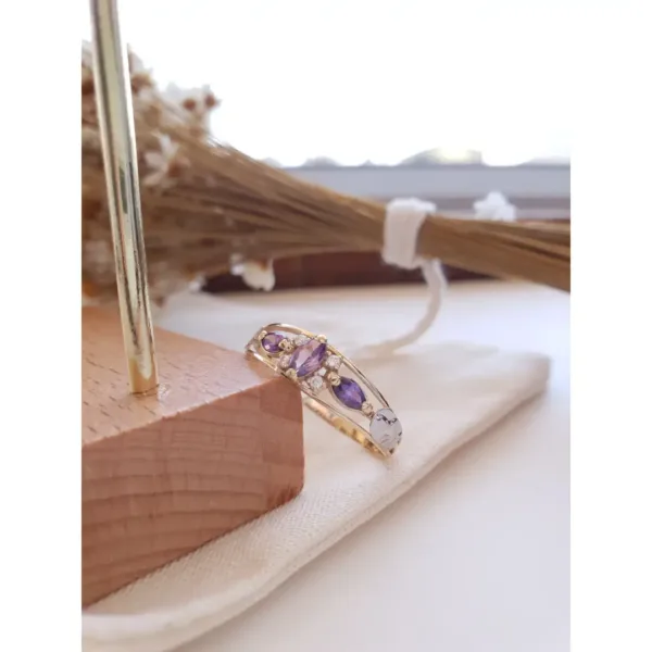 Pedra central: 3 Rubis (navete) de 2,5mm por 5mm.