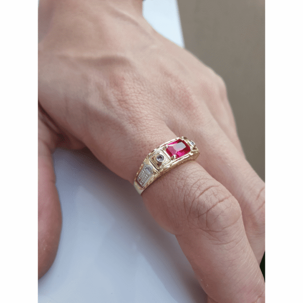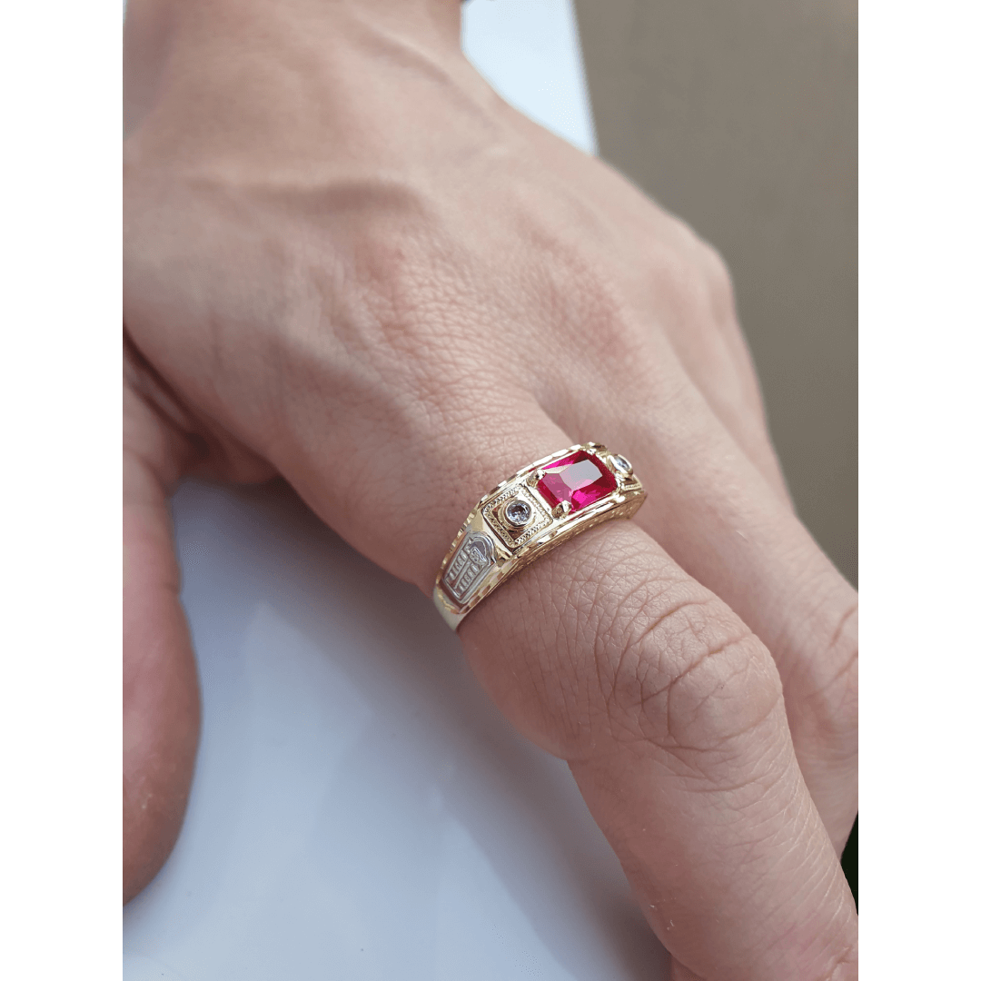 Anel de formatura C119 (DIREITO) disponível em ouro amarelo maciço nas opções 10K e 18K.