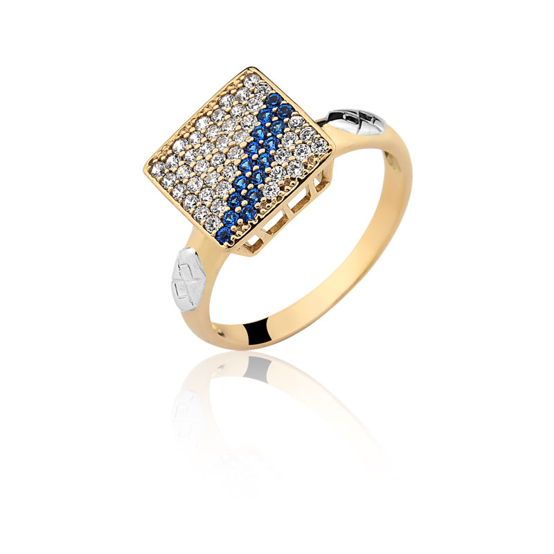 Emblemas do curso em ouro branco maciço e o restante do anel em ouro amarelo maciço.