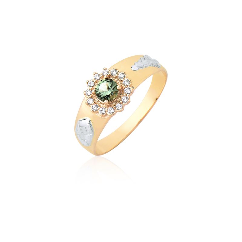 Pedra central: Turmalina Verde sintética redonda com 4mm.