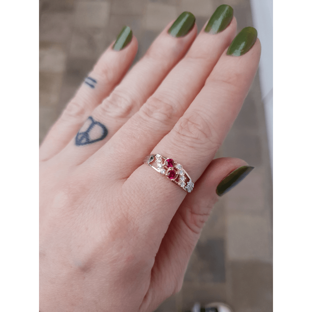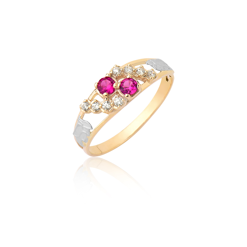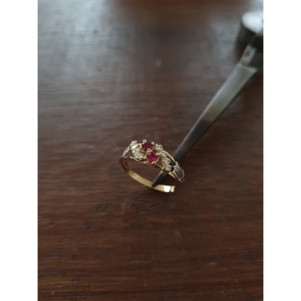 Pedras Centrais: 2 Rubis sintéticos redondos com 3mm.