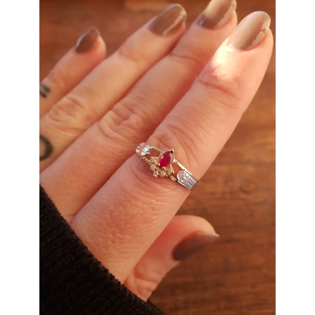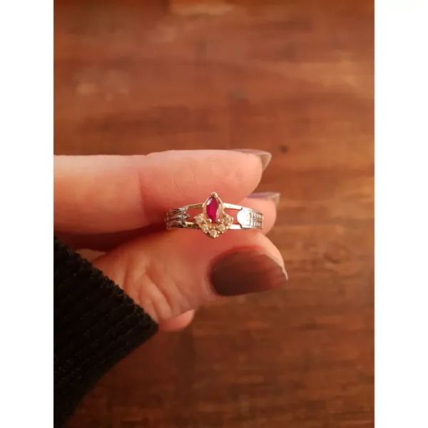 Pedra central: Rubi sintético (navete) com 2,5mm por 5mm.