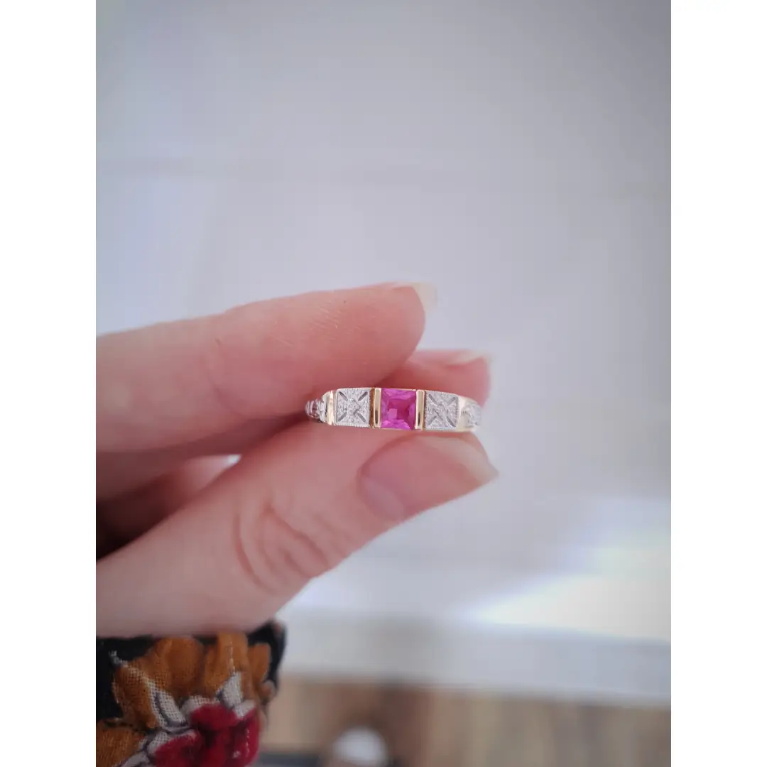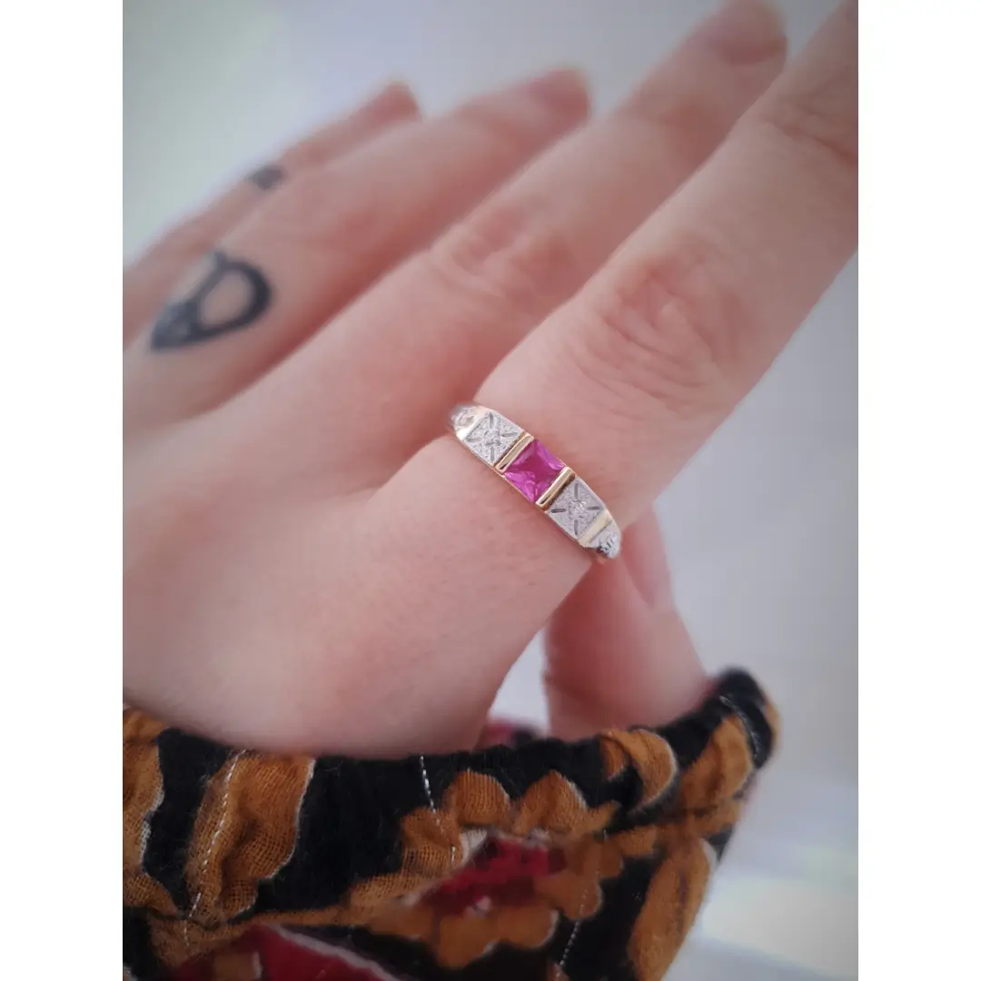 • Pedra central : Uma deslumbrante turmalina rosa sintética de 4mm x 4mm , que traz brilho e personalidade.