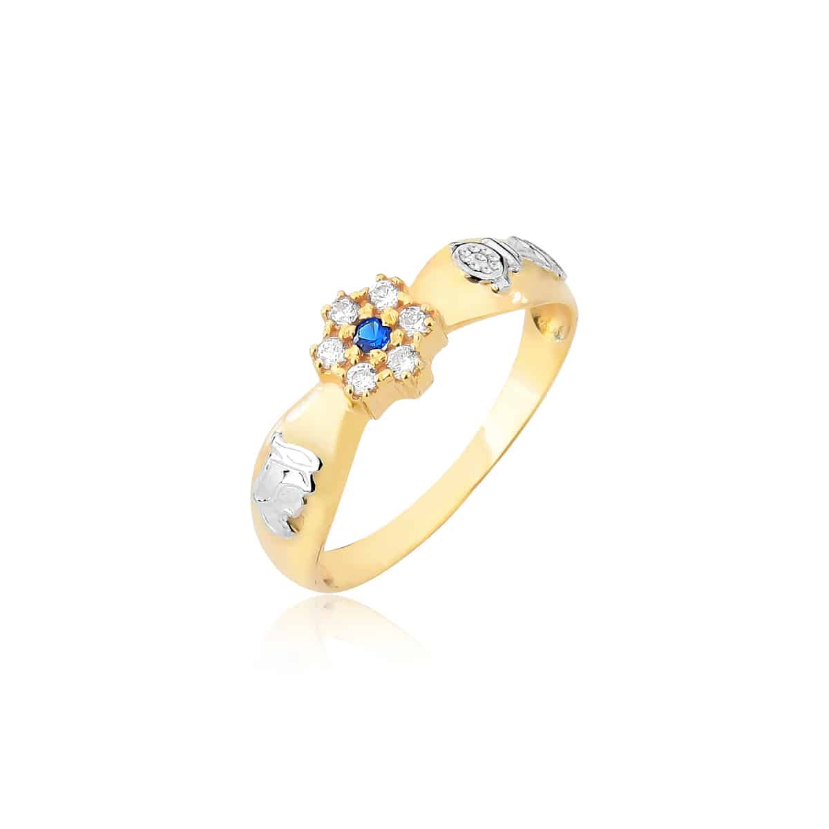 Os emblemas da Engenharia Civil, em ouro branco maciço, trazendo uma mistura elegante de núcleos e texturas. O aro é bem reforçado, e o centro da joia brilha com uma safira azul de 1,75mm, representando a essência e a força da Engenharia.