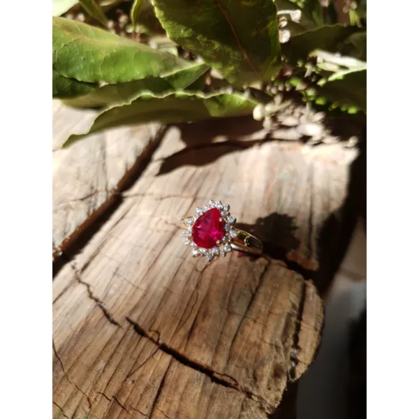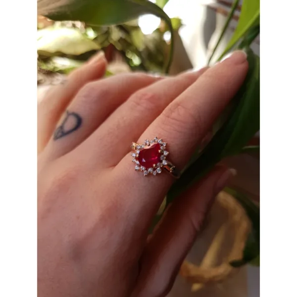 Além disso, o rubi sintético e as zircônias são escolhidos para proporcionar o máximo de beleza e resistência, combinando perfeitamente com o design do anel. Esse cuidado na escolha dos materiais resulta em uma peça que não só é linda, mas também mantém sua aparência e valor ao longo do tempo. Para essa joia ficar ainda mais linda cravamos pedras naturais também, só solicitar orçamento através de nosso whats ou (aqui).