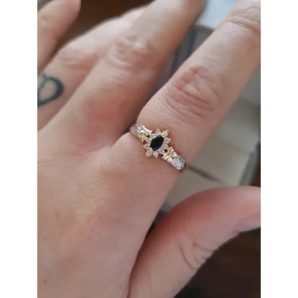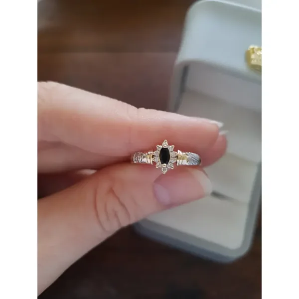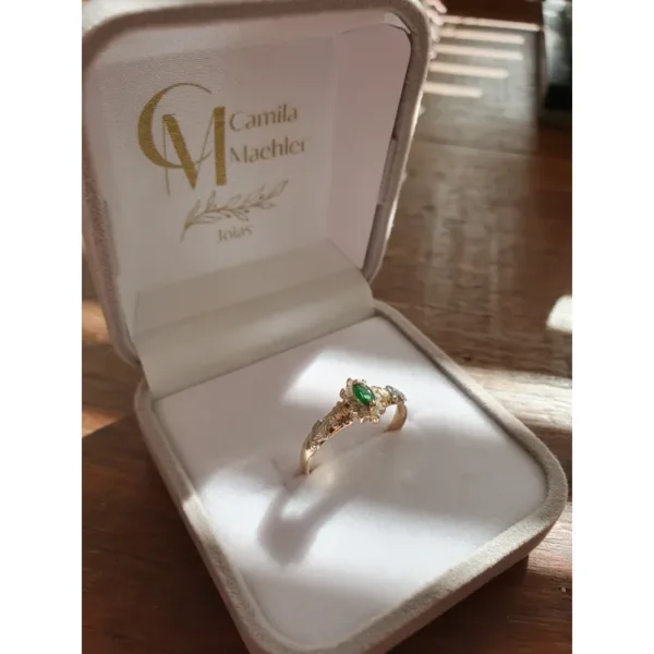 Pedra central: Ametista sintética navete com 2,5mm por 5mm.