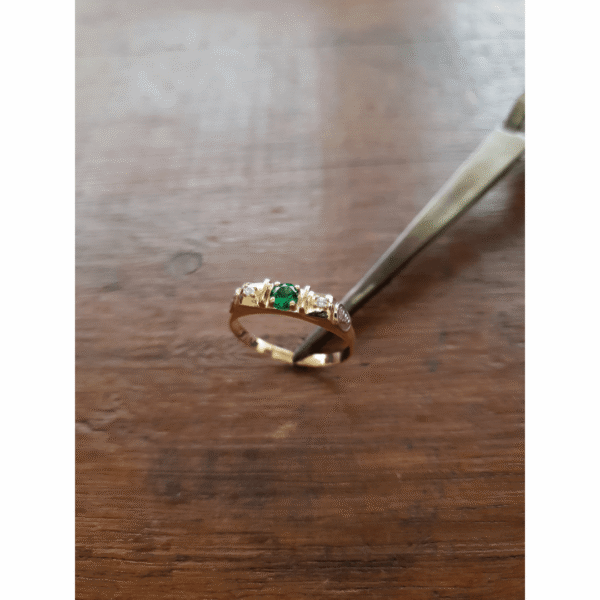 Emblemas do curso em ouro branco maciço e o restante do anel em ouro amarelo maciço.