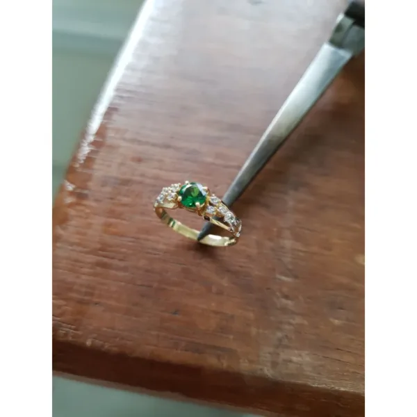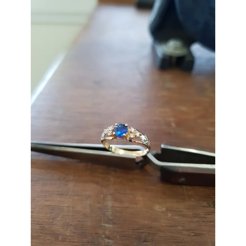 Pedra central: Safira Azul sintética redonda com 5mm.