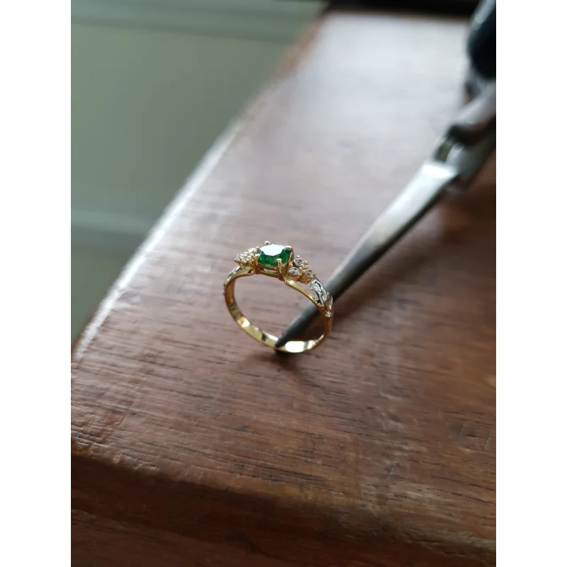Emblemas do curso em ouro branco maciço e o restante do anel em ouro amarelo maciço.