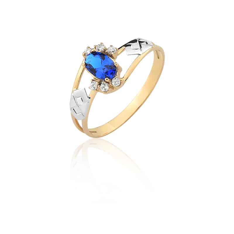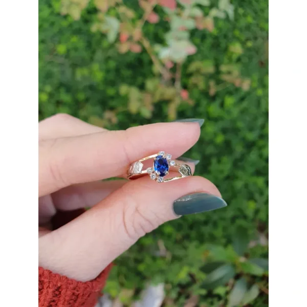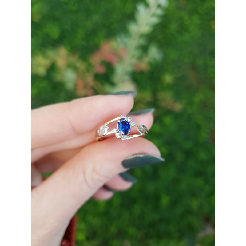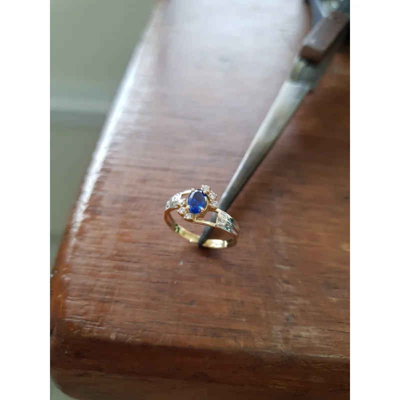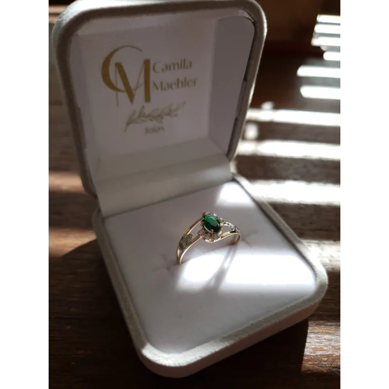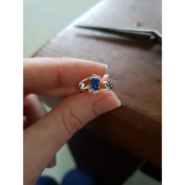 Pedra central: Rubi sintético oval com 4mm por 6mm.