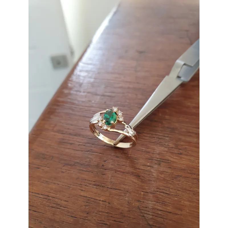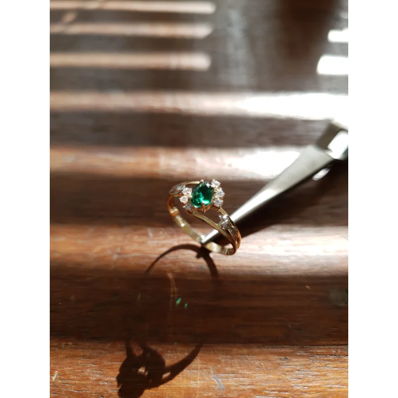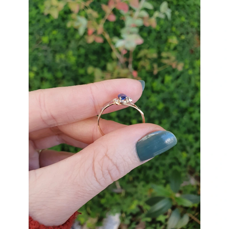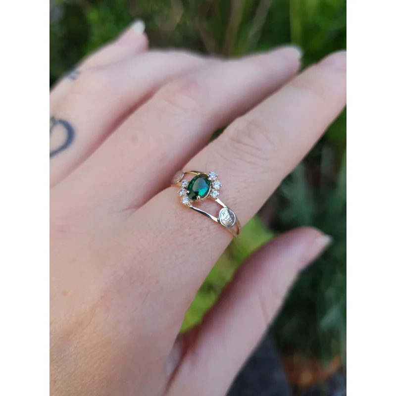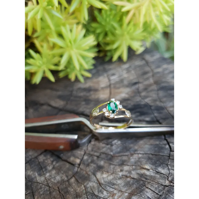 Pedra central: Rubi sintético oval com 4mm por 6mm.