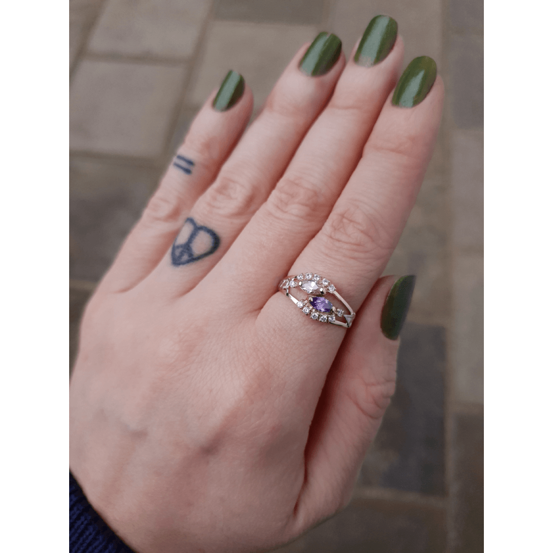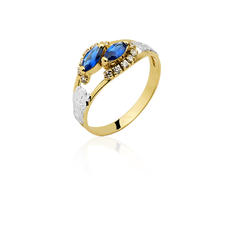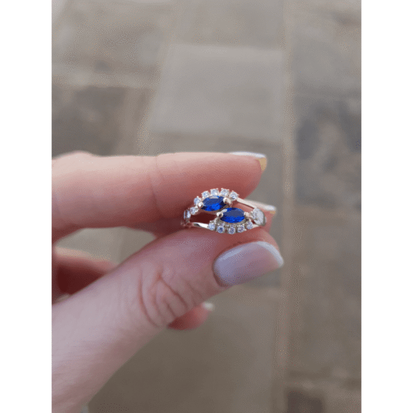 Pedras centrais: 2 Safiras Azul sintética (navete) com 3mm por 6mm.