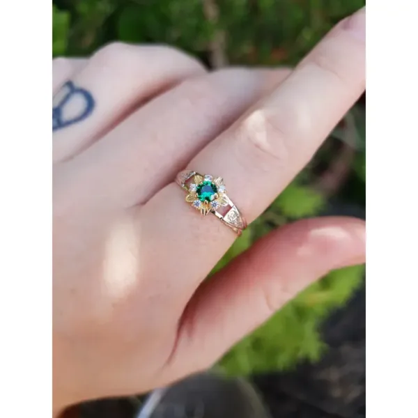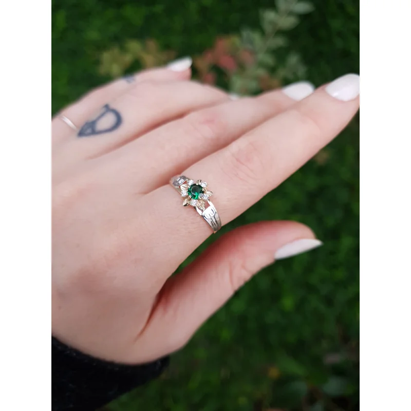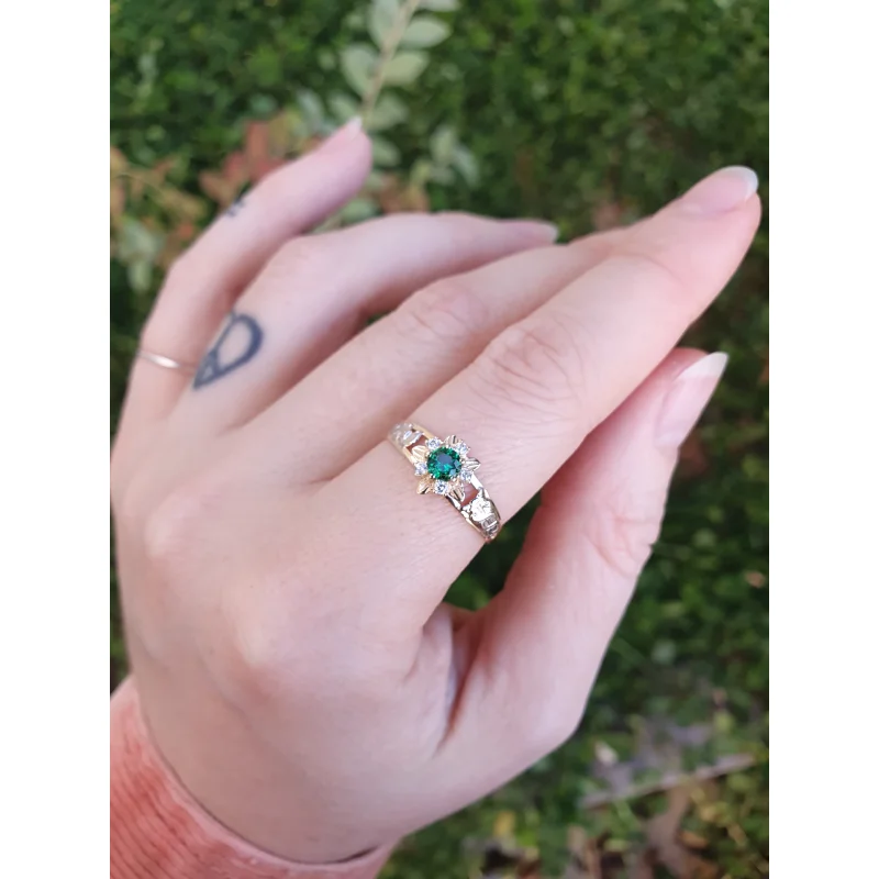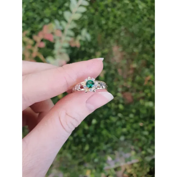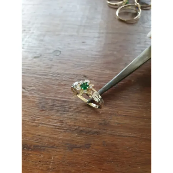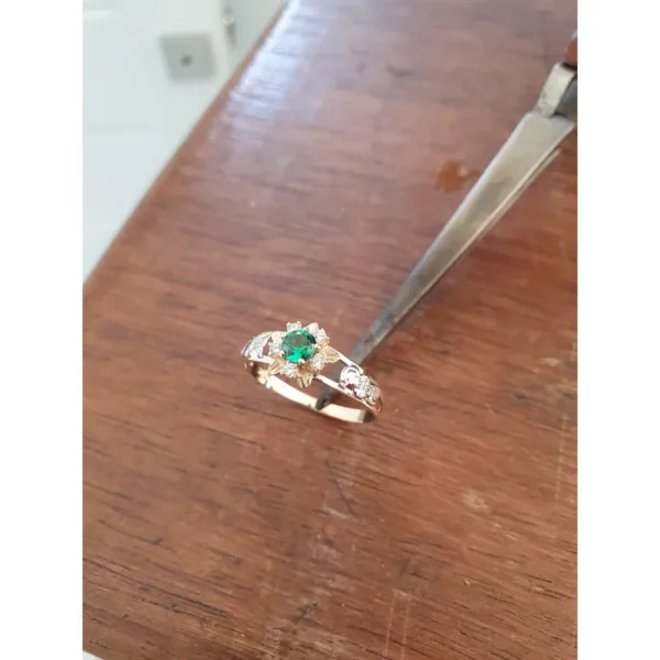 Pedra central: Esmeralda Verde redonda com 4mm.