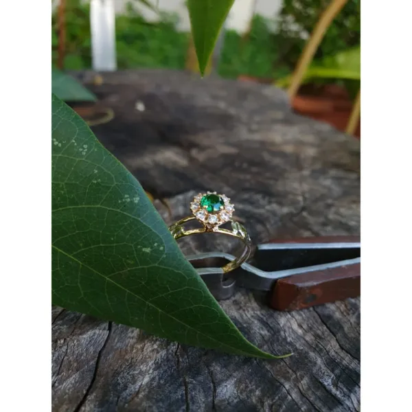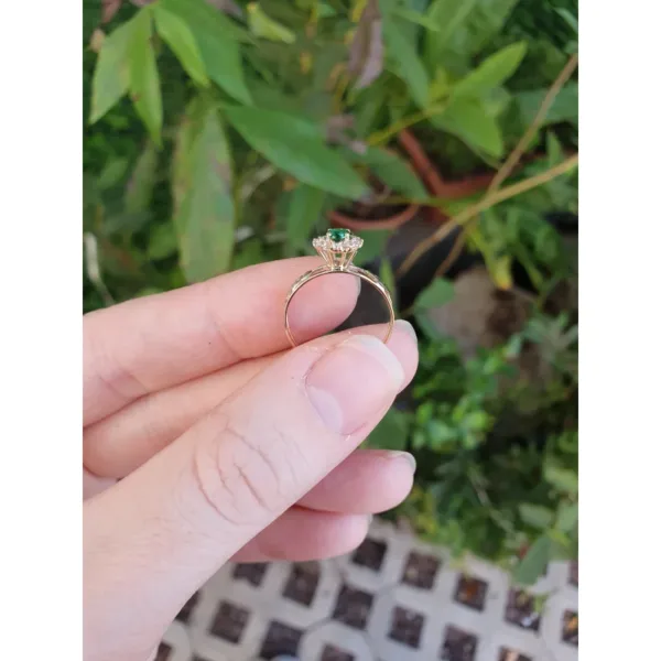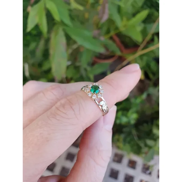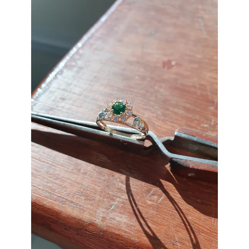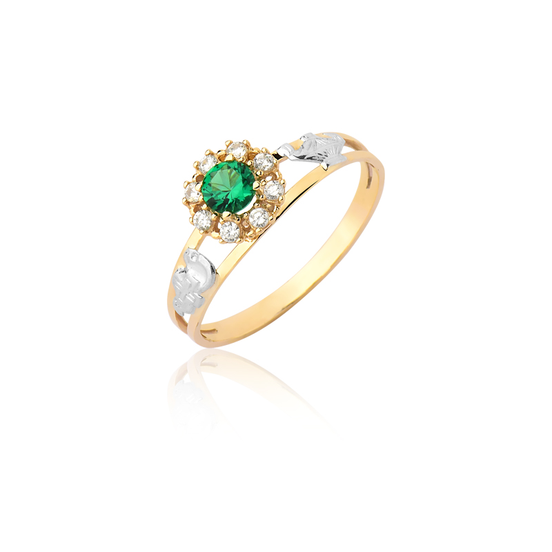 Pedra central: Esmeralda sintética (redonda) 4mm.