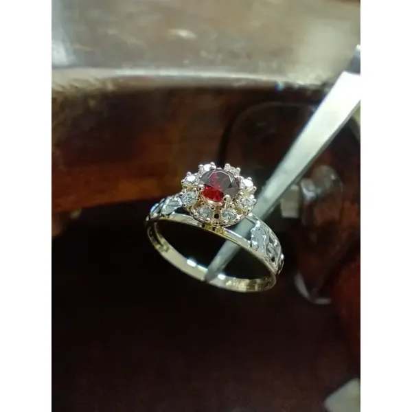 Emblemas do curso em ouro branco maciço e o restante do anel em ouro amarelo maciço.
