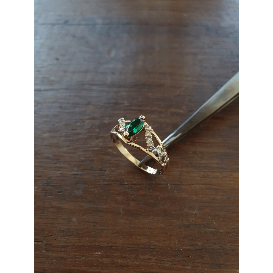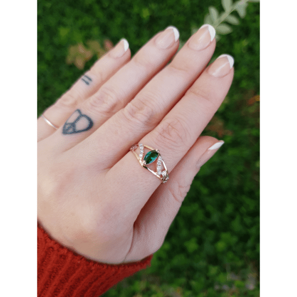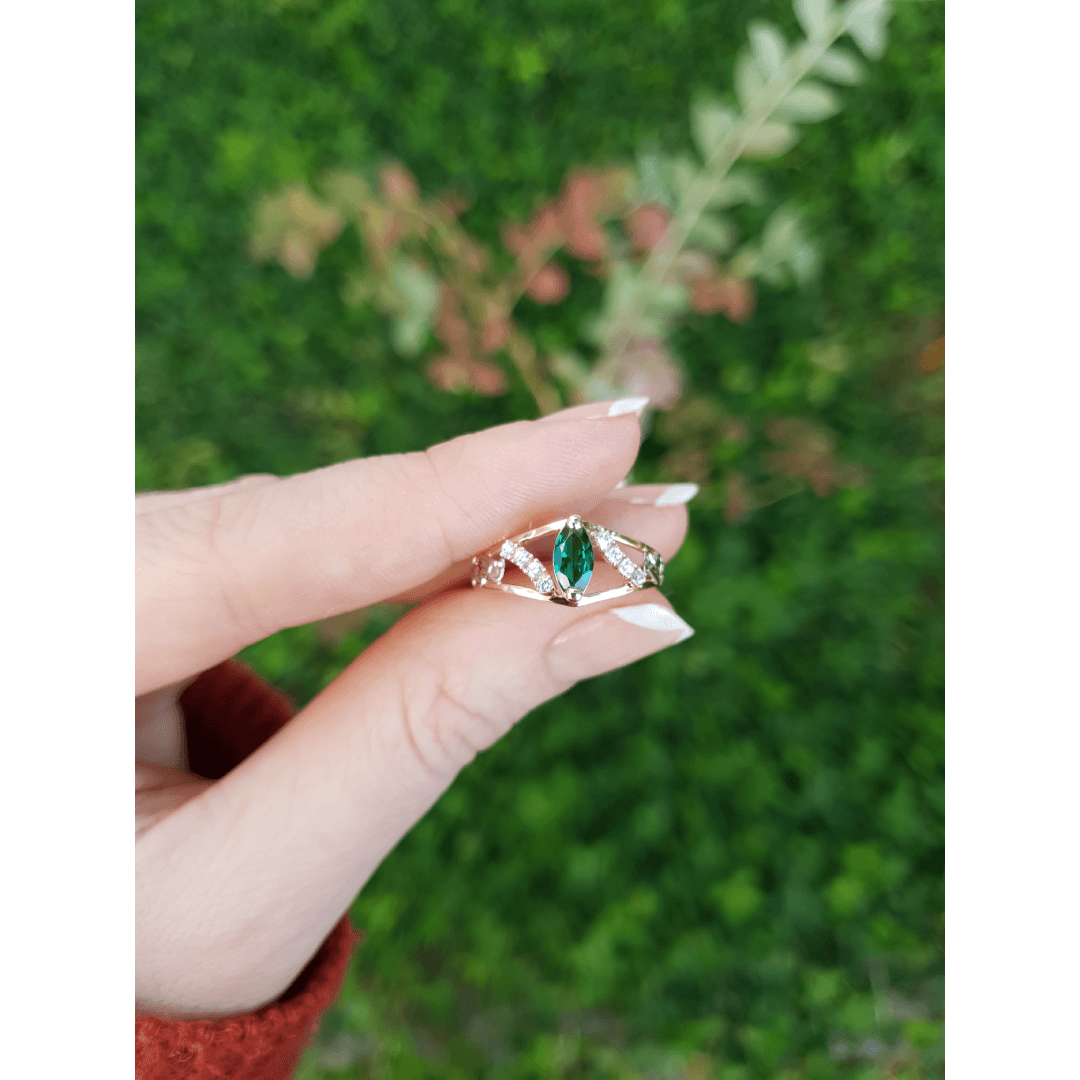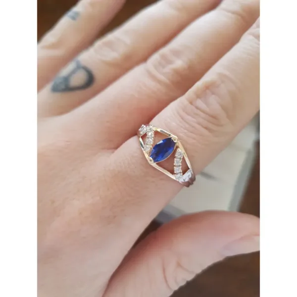 Pedra central: Ametista sintética (navete) 4mm por 8mm.