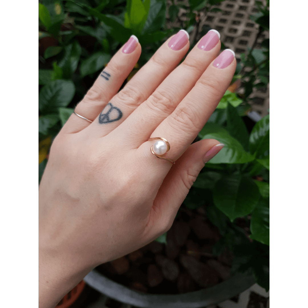 Anel de pérola AC07 disponível em ouro amarelo maciço nas opções 10K e 18K.