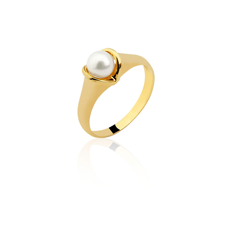Anel de pérola AC08 disponível em ouro amarelo maciço nas opções 10K e 18K.