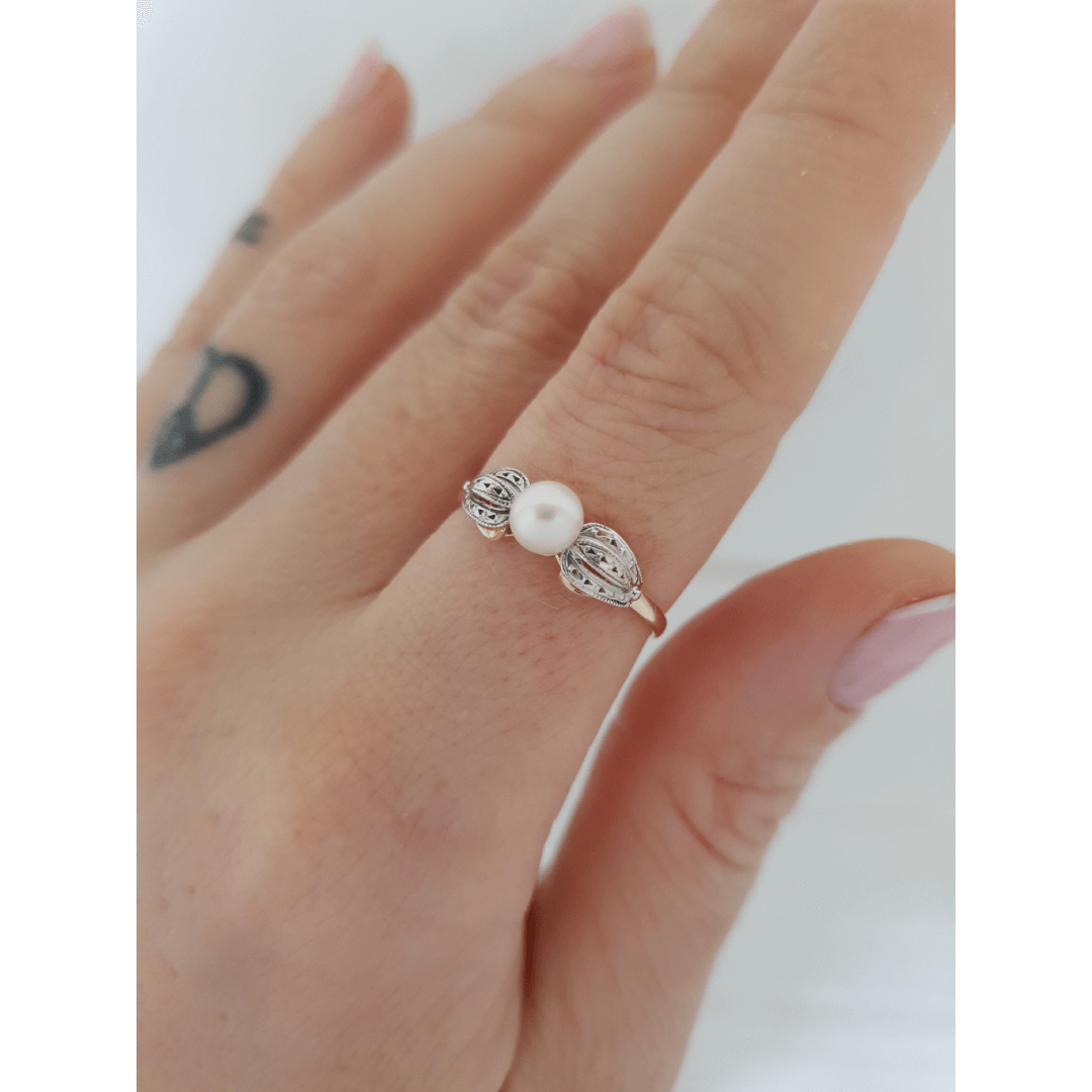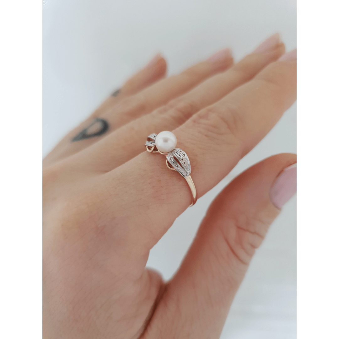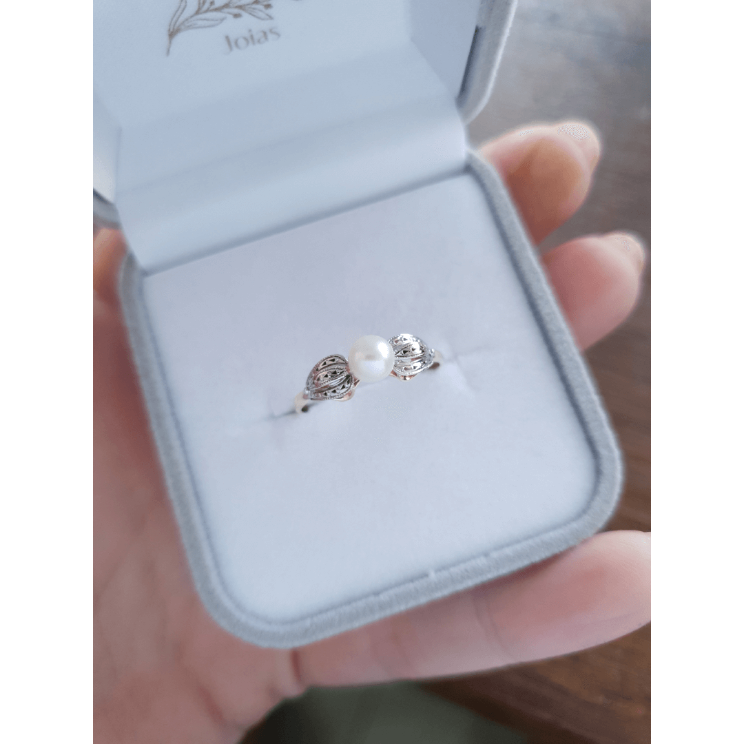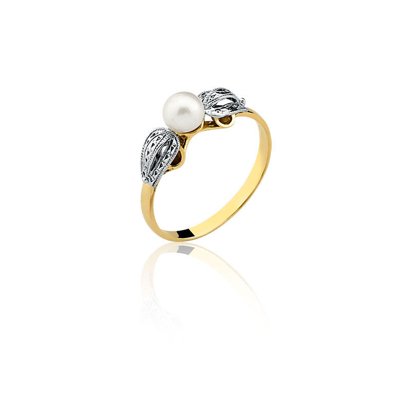 Anel de pérola AC13 em ouro amarelo e branco, disponível nas opções 10K e 18K.