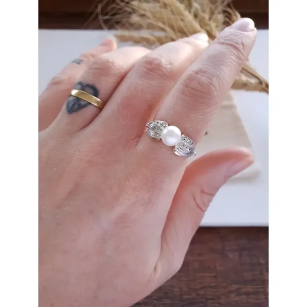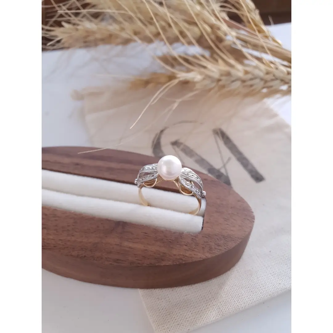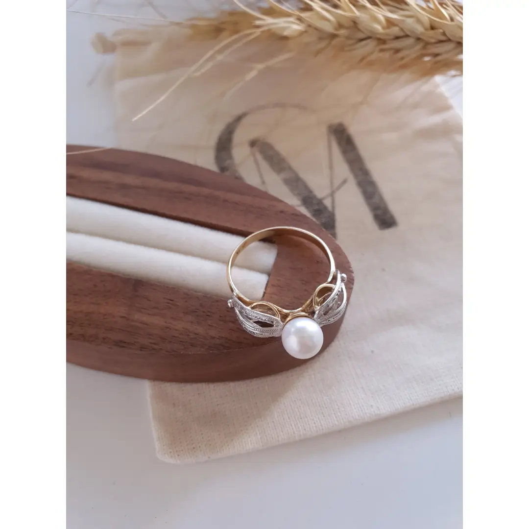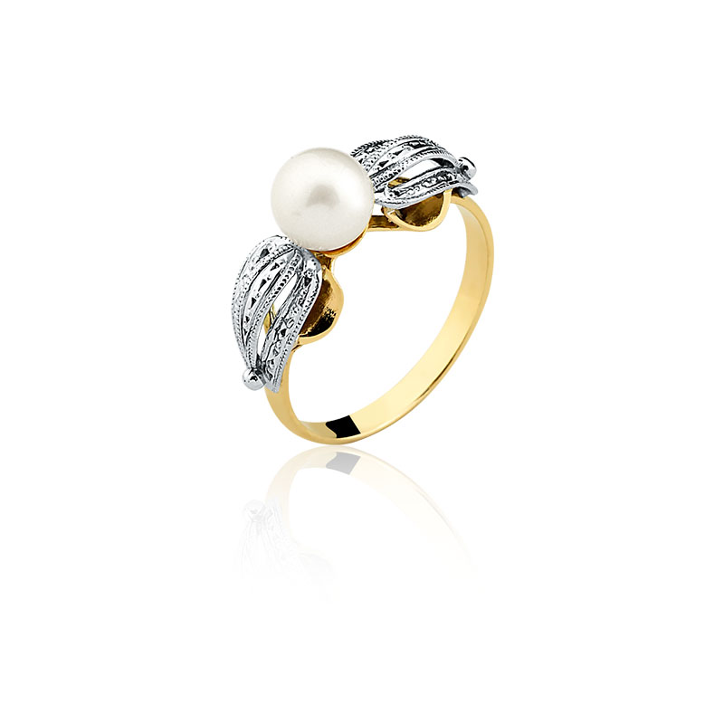 Anel de pérola AC14 em ouro maciço amarelo e branco disponível nas opções 10K e 18K.