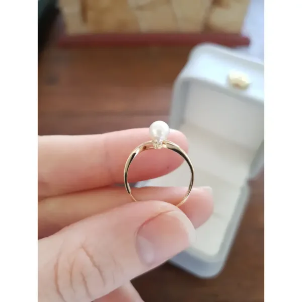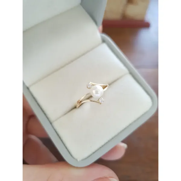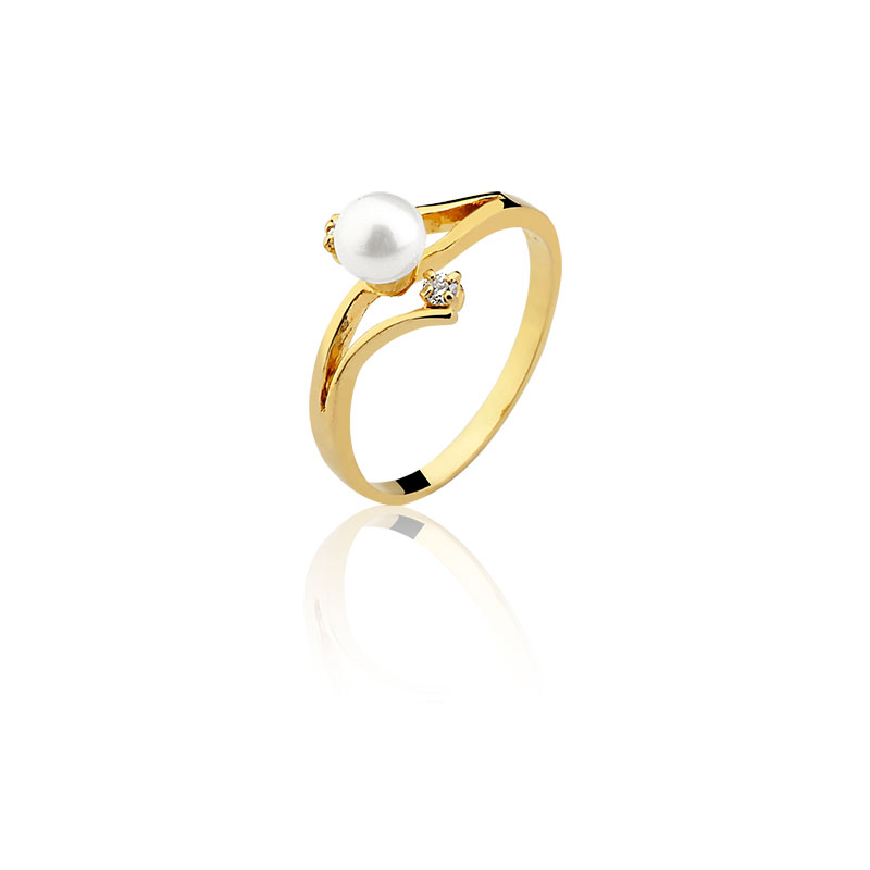 Anel de pérola com pedras AC05 disponível em ouro amarelo maciço nas opções 10K e 18K.