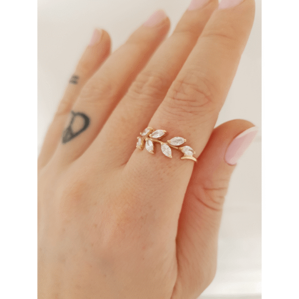 Anel Folhas modelo CS728, disponível em ouro maciço 10k e em ouro maciço 18k.