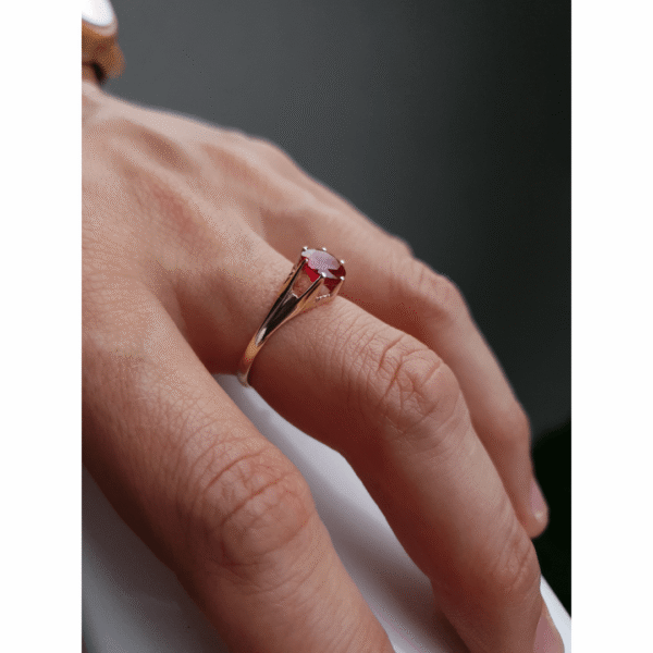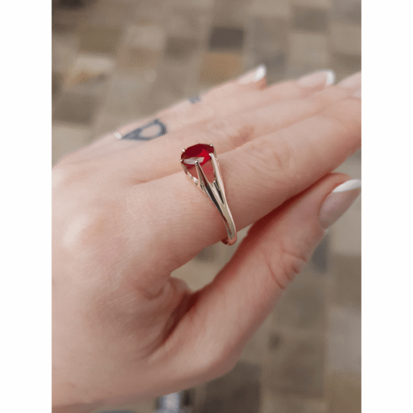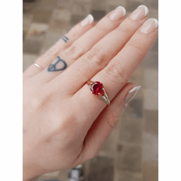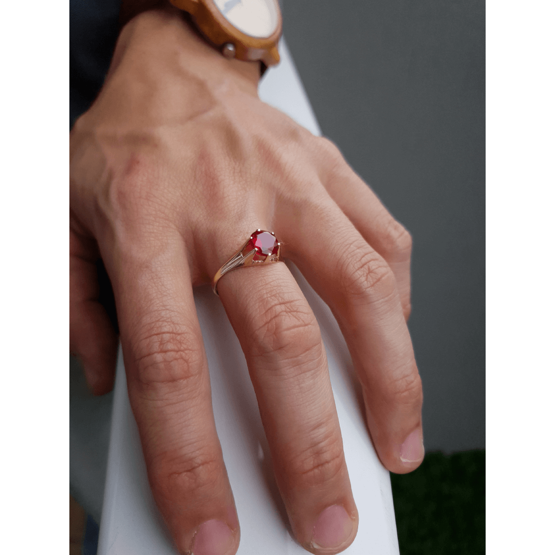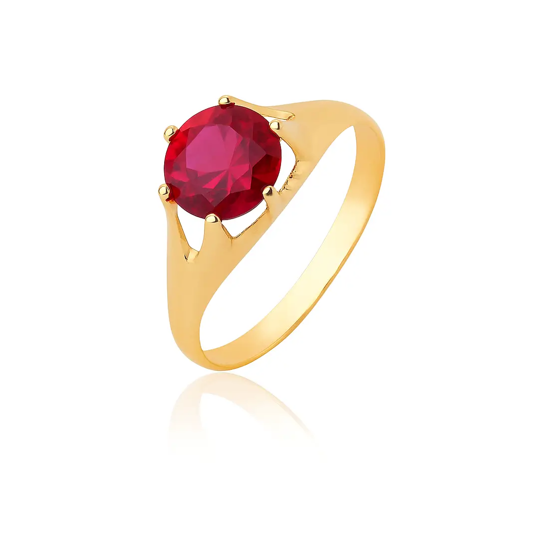 Pedra central: Zircônia na cor Rubi com 8mm redonda.