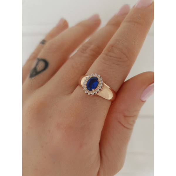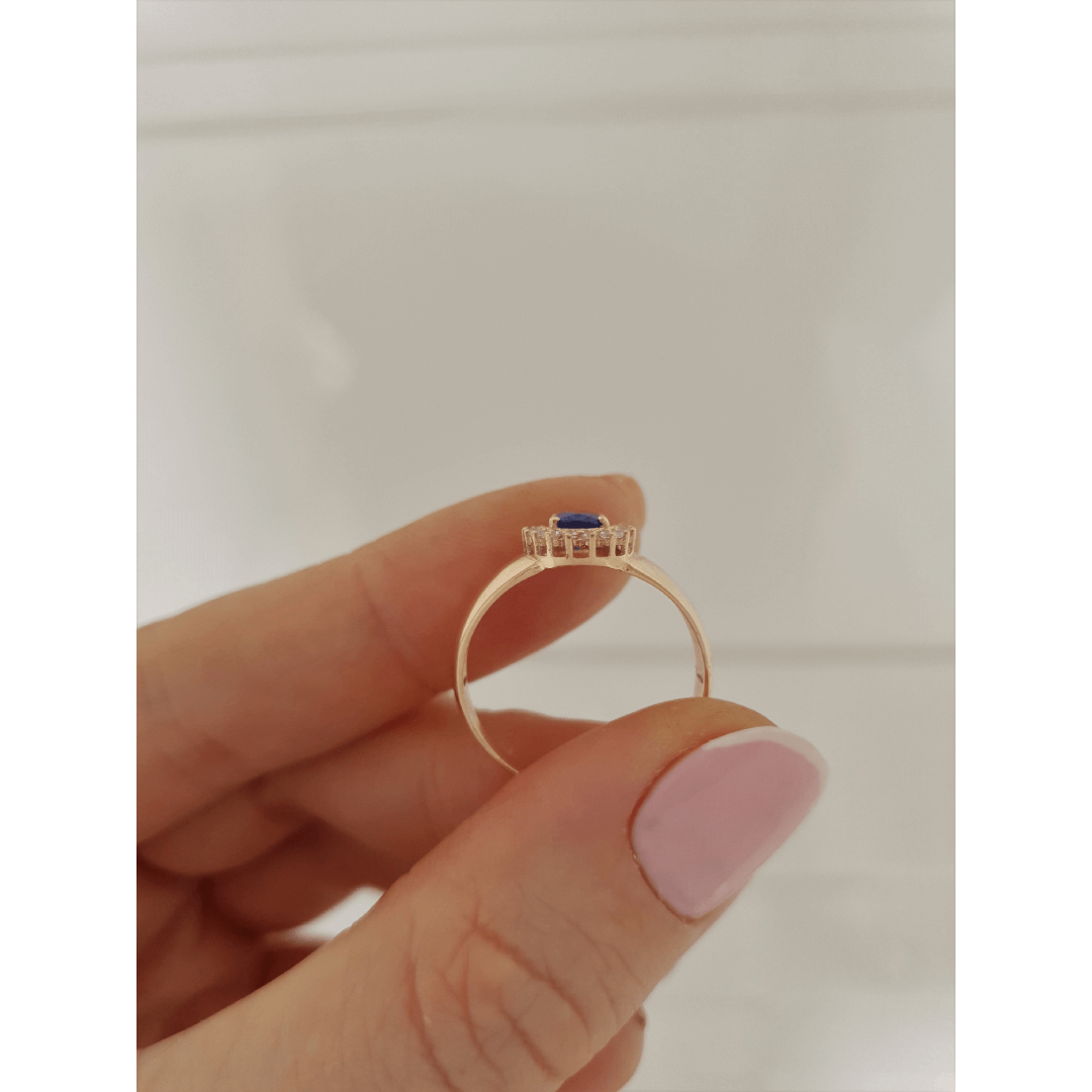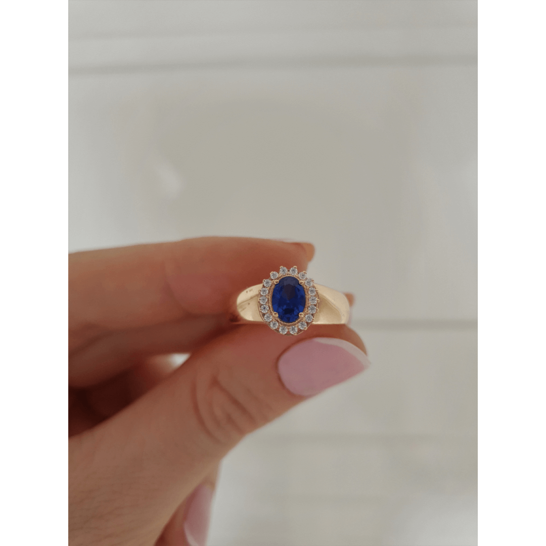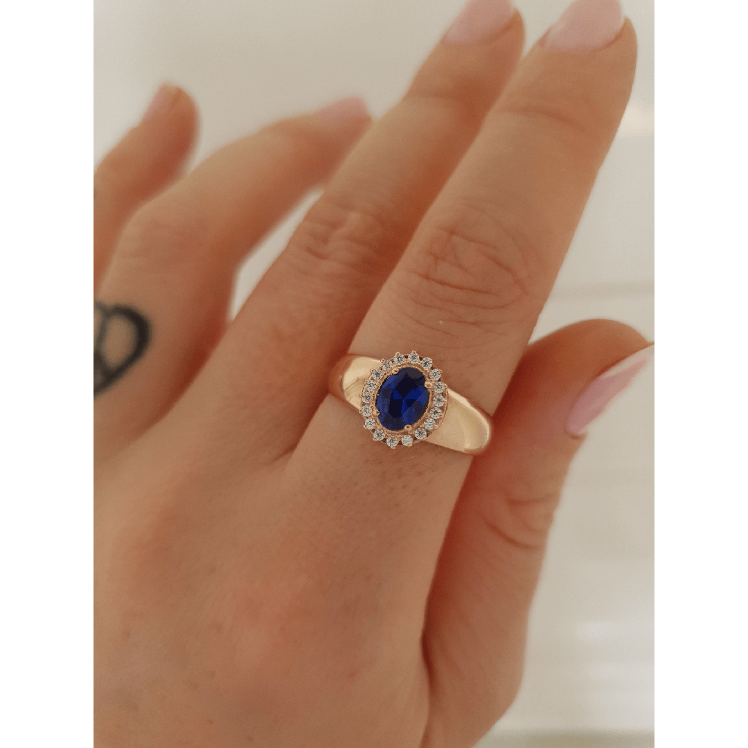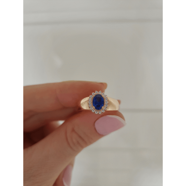 Pedra Central: Azul Safira de 5mm por 7mm oval.