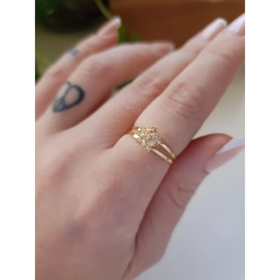 Anel C18 (chuveiro), disponível em ouro amarelo maciço nas opções 10K e 18K.