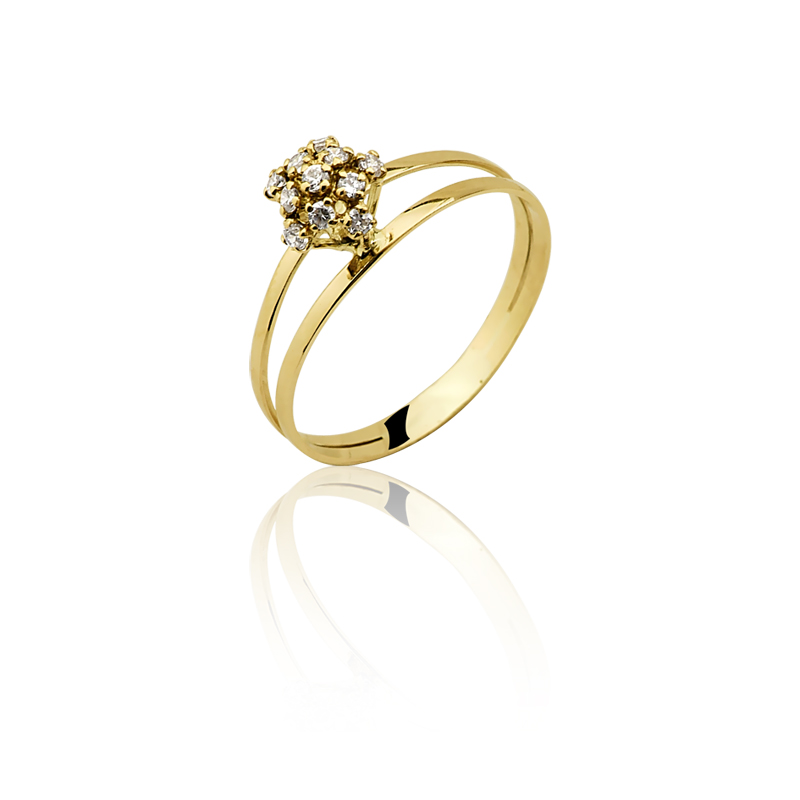 Anel C8 (chuveiro), disponível em ouro amarelo maciço nas opções 10K e 18K.