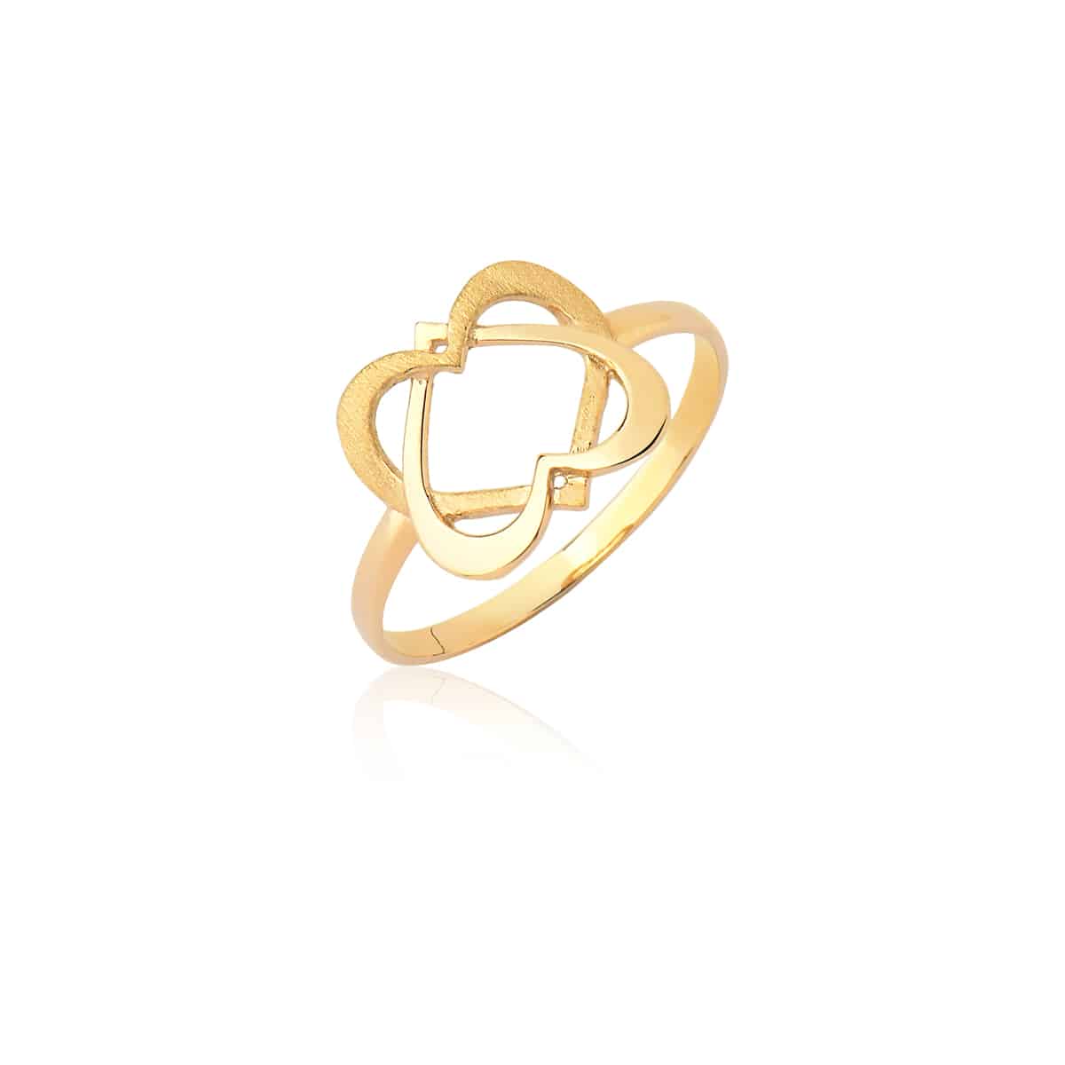 Anel corações C506 modelo 2, disponível em ouro amarelo maciço nas opções 10K e 18K.