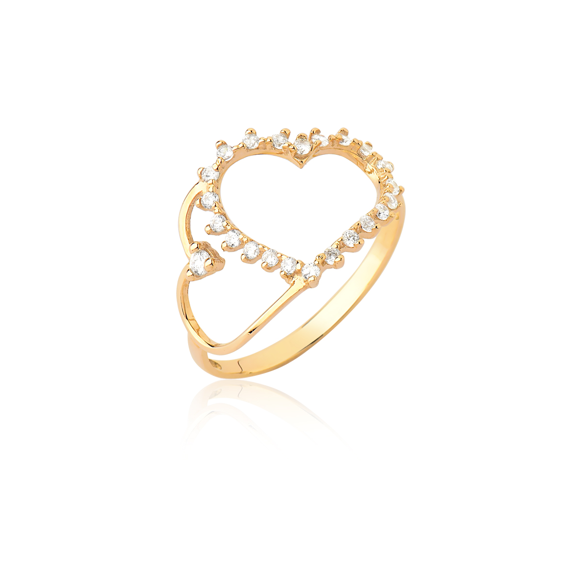 Anel corações C504, disponível em ouro amarelo maciço nas opções 10K e 18K.