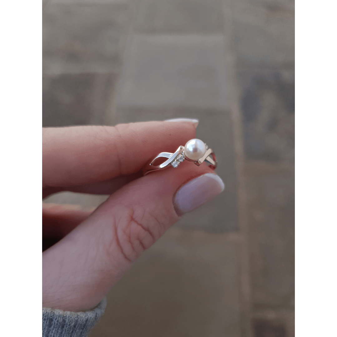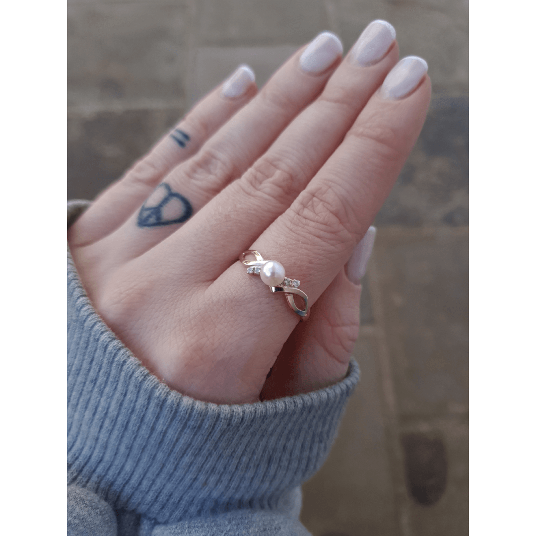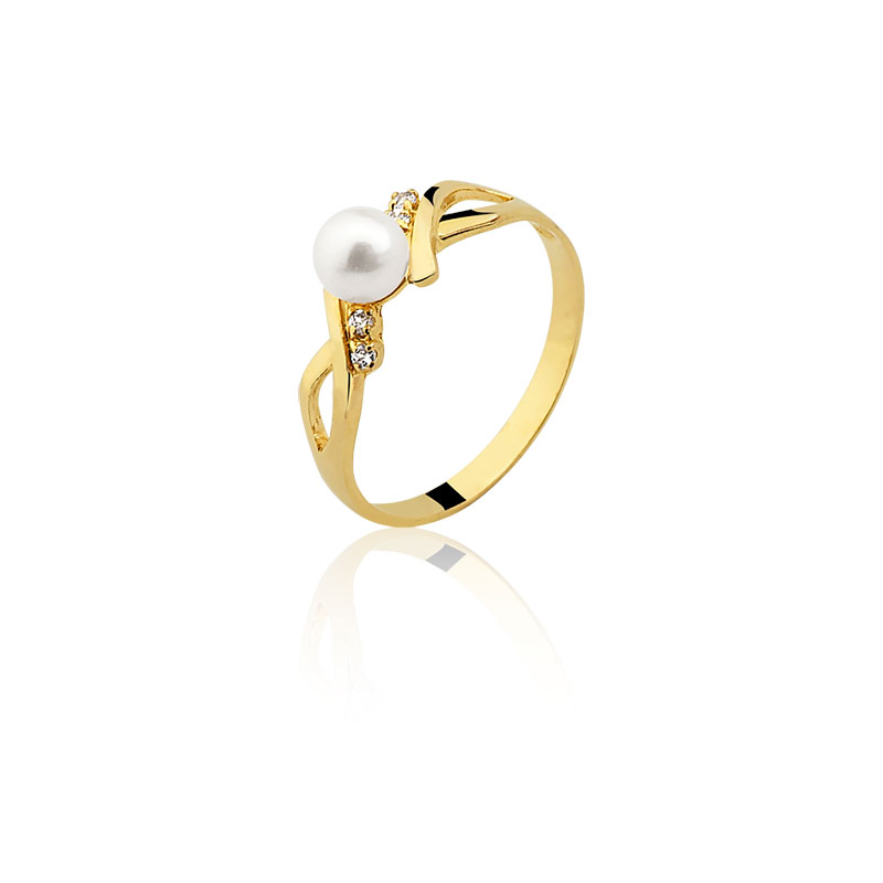 Anel de pérola com pedras AC06 disponível em ouro amarelo maciço nas opções 10K e 18K.