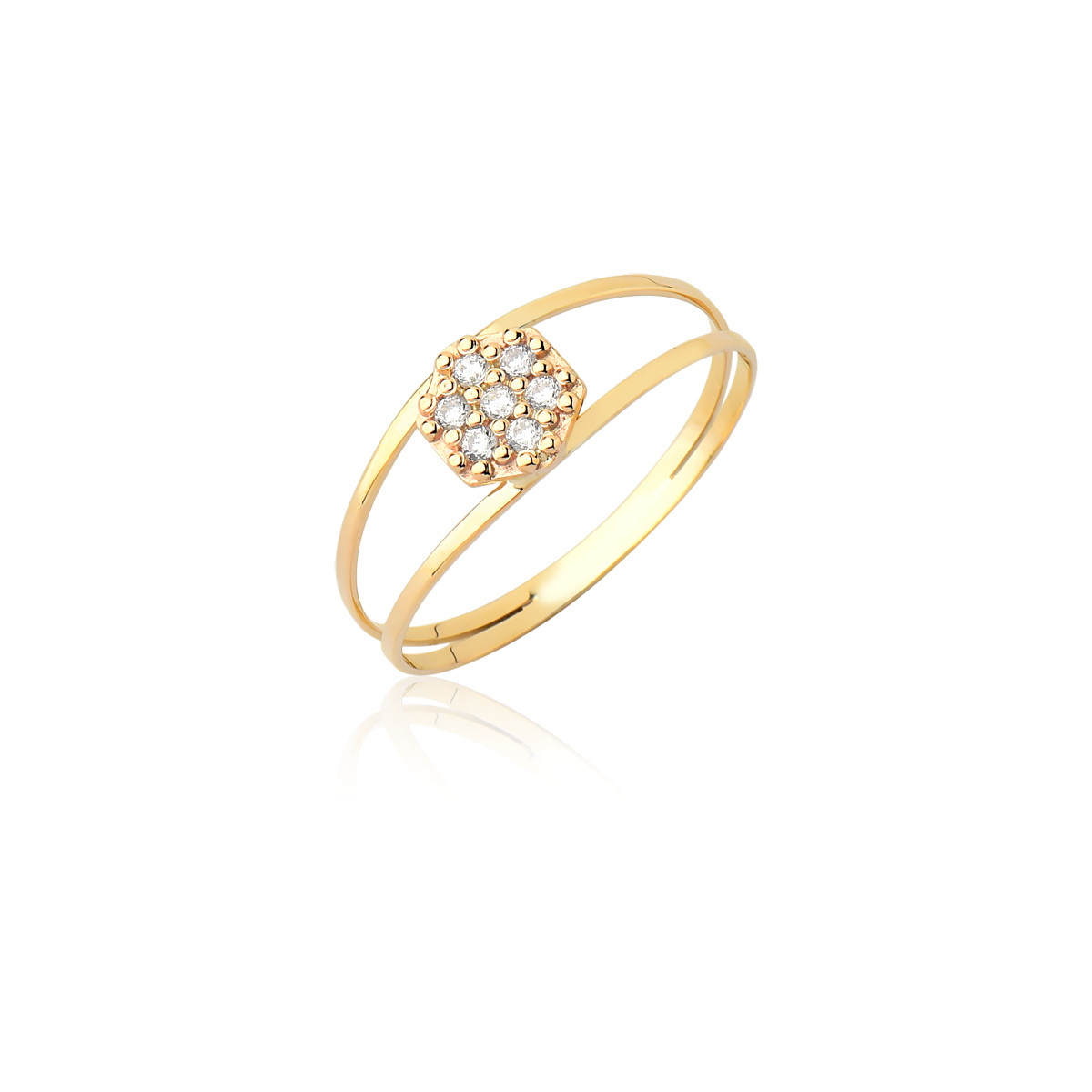 Anel Izabel linha slim, disponível em ouro amarelo maciço nas opções 10K e 18K.