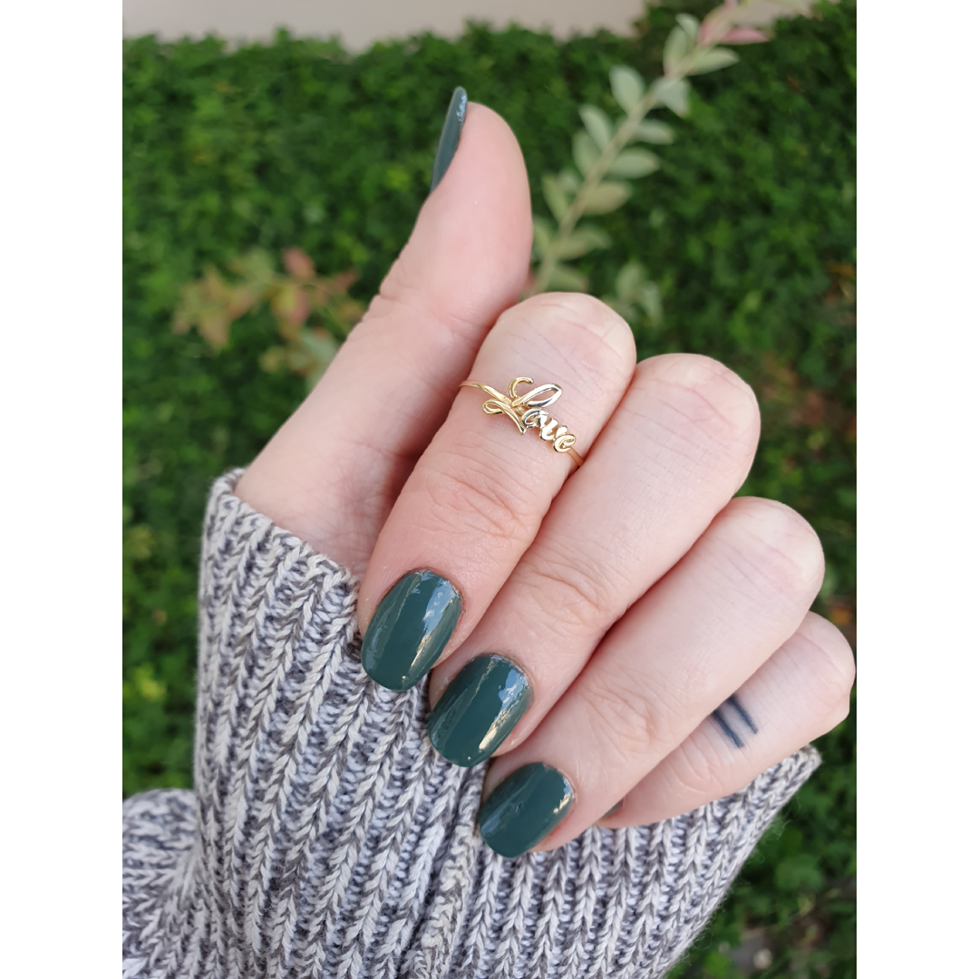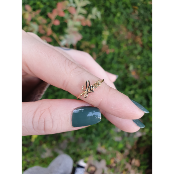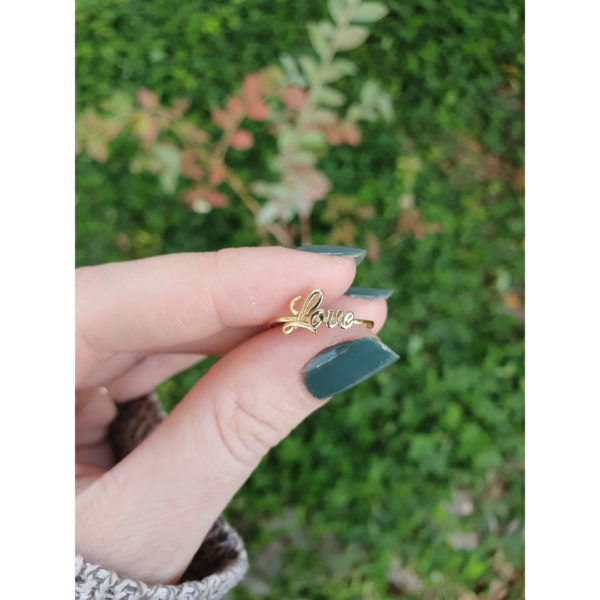 Anel Love linha slim, disponível em ouro amarelo maciço nas opções 10K e 18K.