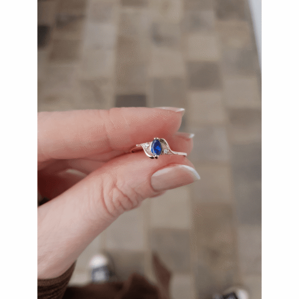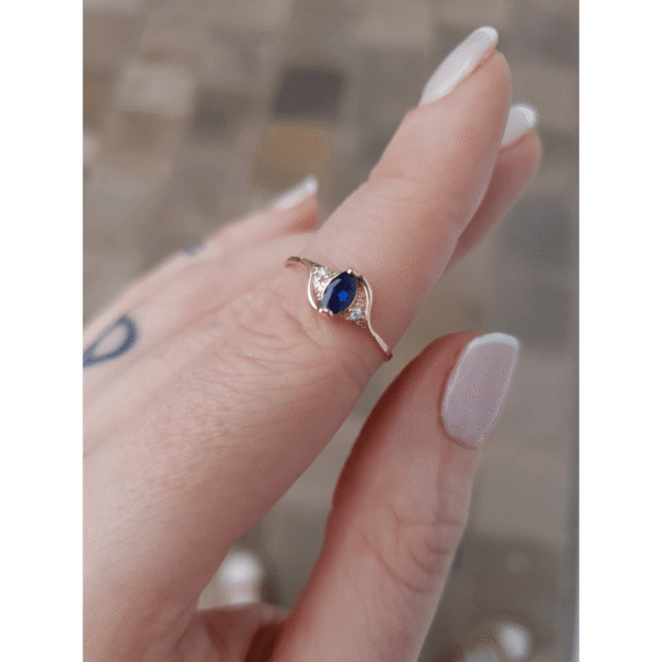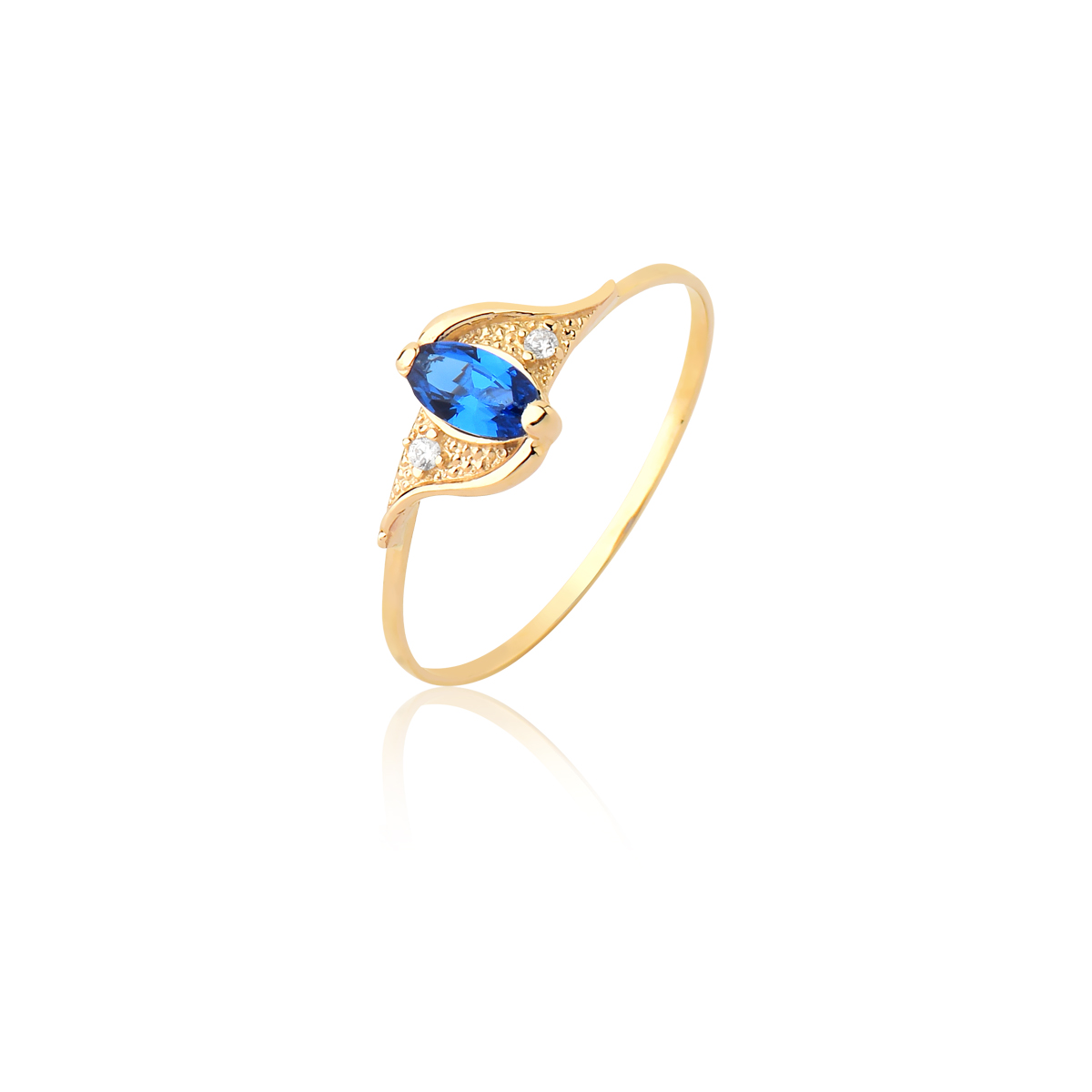 Pedra Central: Safira Azul (navete) com 2,5mm por 5mm.