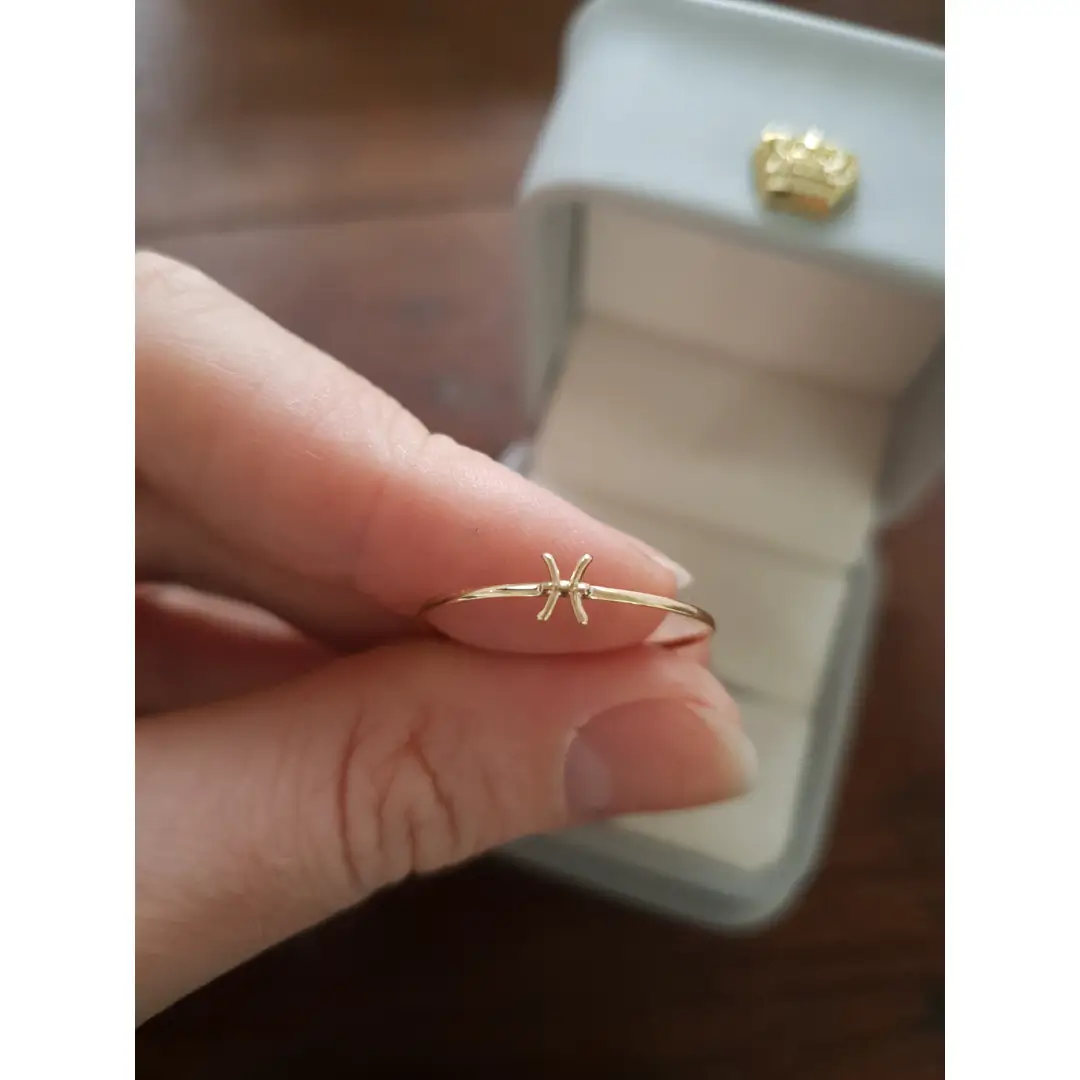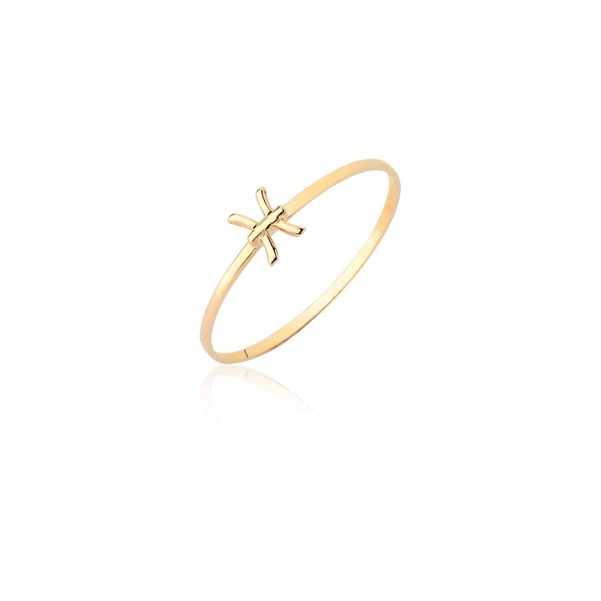 Anel Ouro maciço Peixes, representado por dois peixes nadando em direções opostas, unidos por um cordão. Juntos, eles simbolizam as marés da vida, o fim de um ciclo e a preparação para o novo que irá chegar.